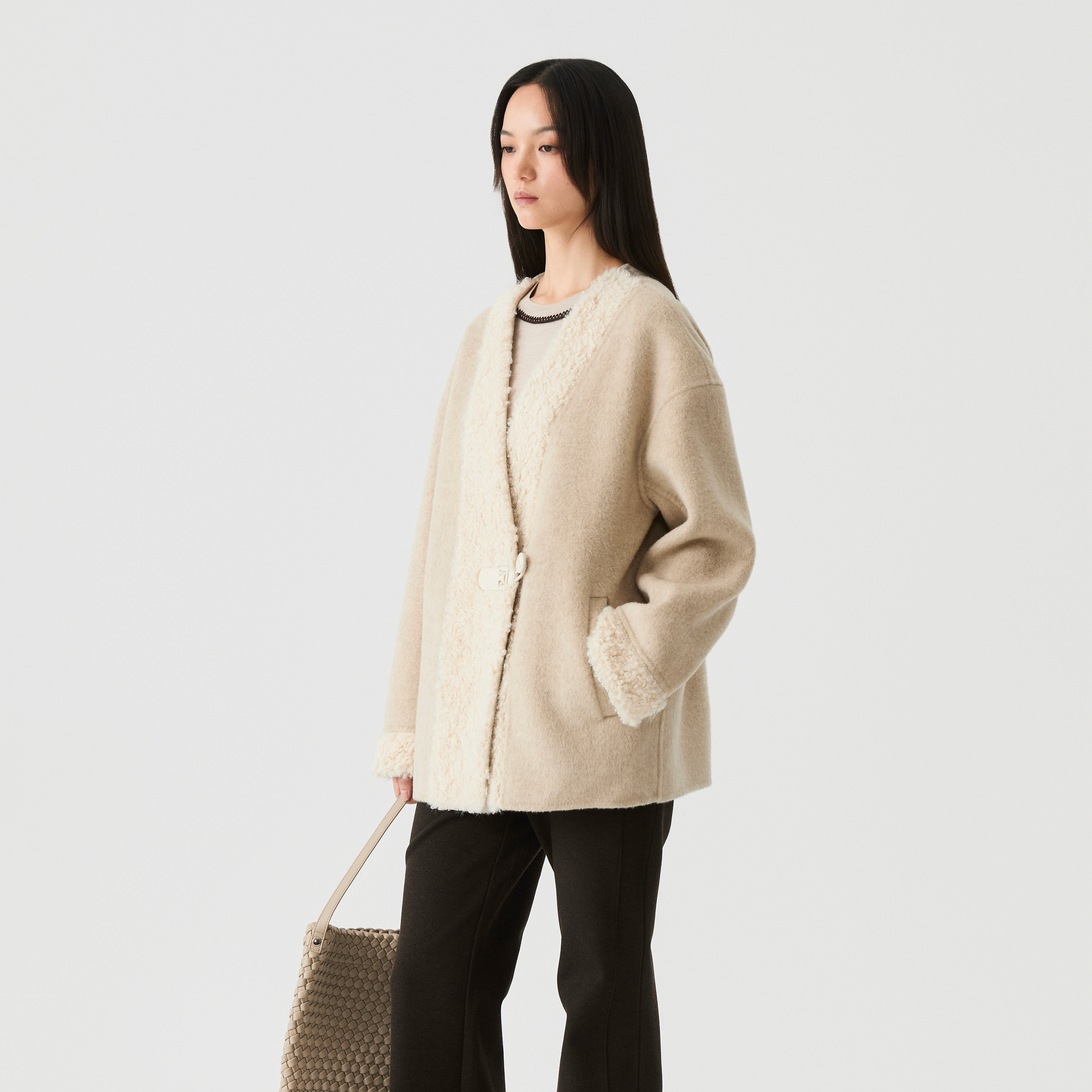 📚 【100%羊毛】播短款宽松毛呢外套女冬季通勤上衣DDS4AD5131