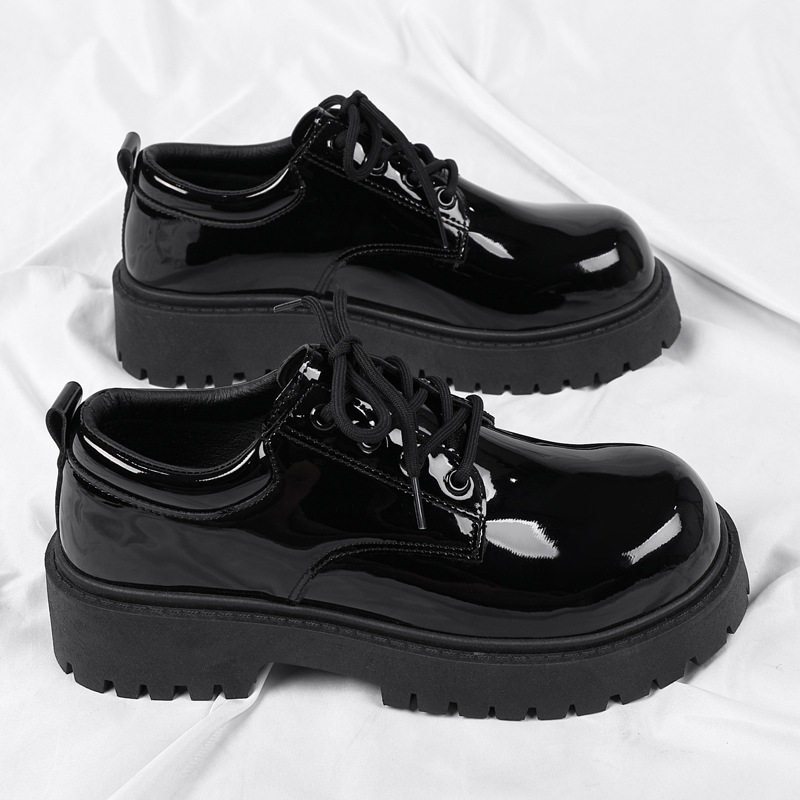 📚 黑色亮面大头皮鞋男休闲运动英伦新郎婚鞋增高厚底商务正装潮鞋子