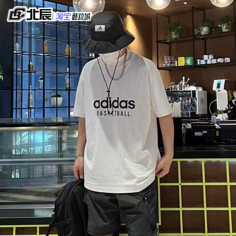 📚 adidas三叶草短袖男女款BASKETBALL简约宽松半高领休闲T恤IA3448