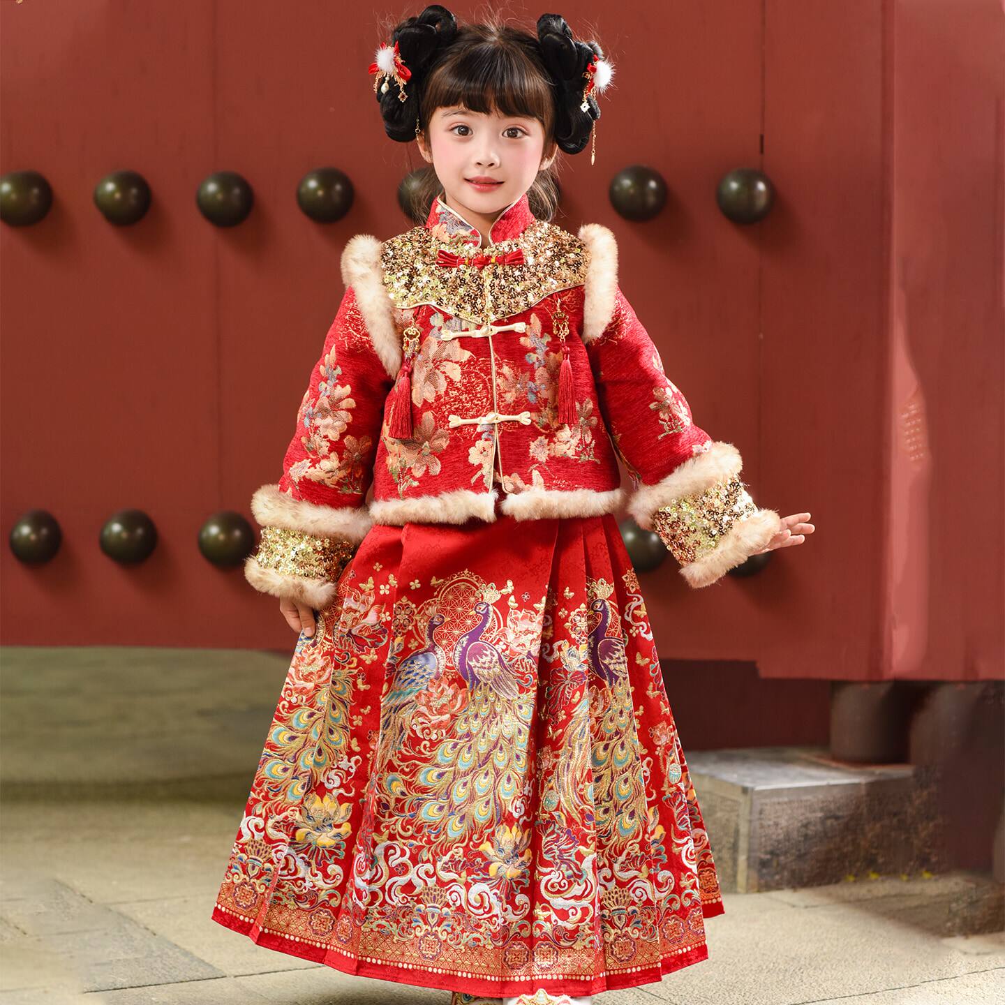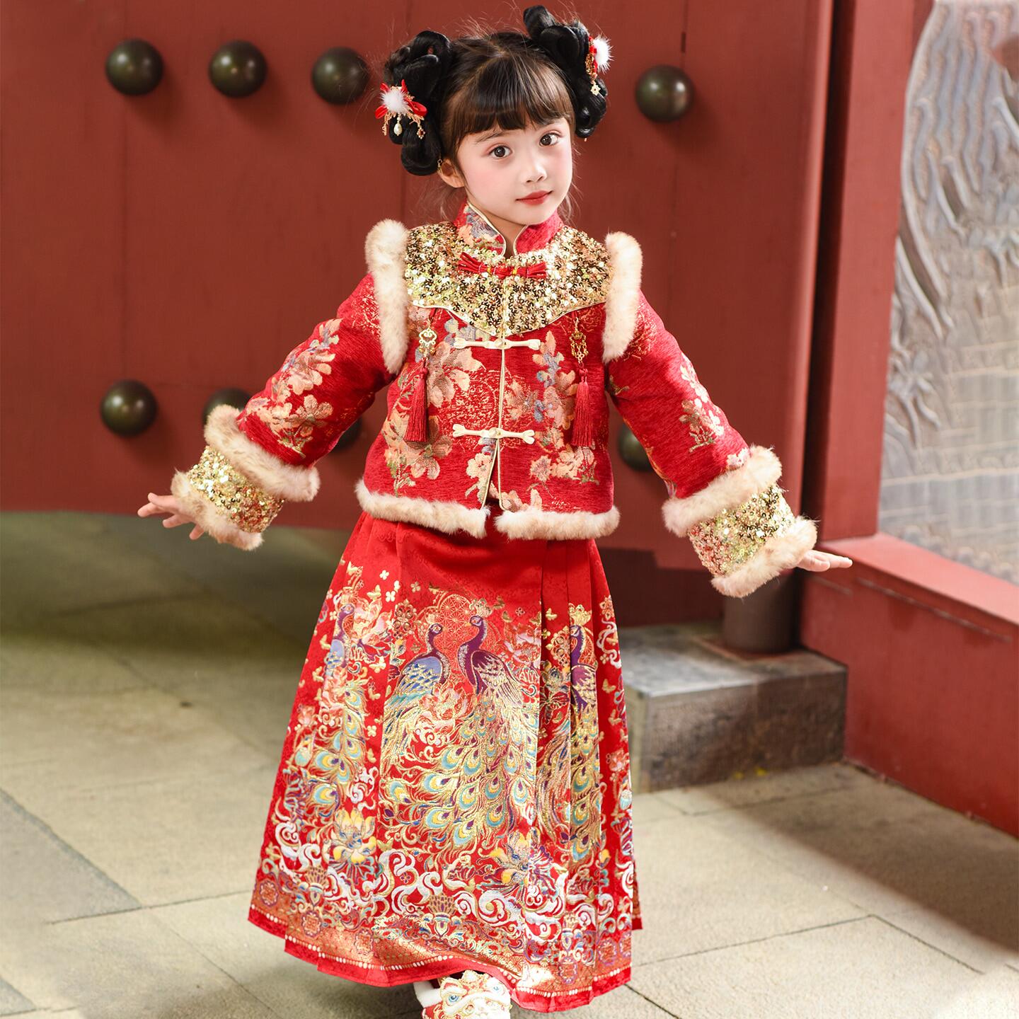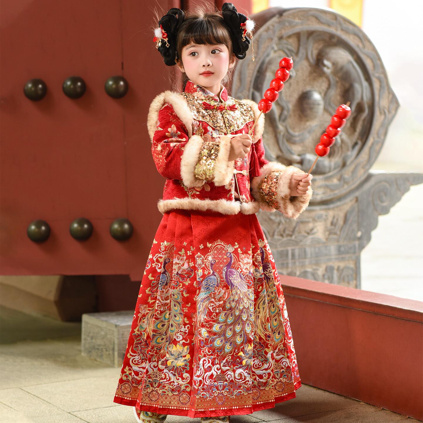 📚 女童汉服新中式儿童马面裙套装冬装2026新款女孩国风新年装拜年服