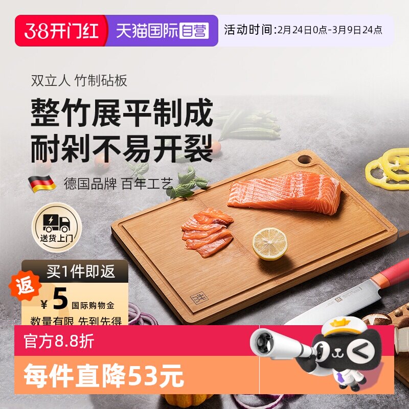 📚 【自营】双立人砧板切菜板TPU砧板天然整竹板耐用不开裂切肉案板