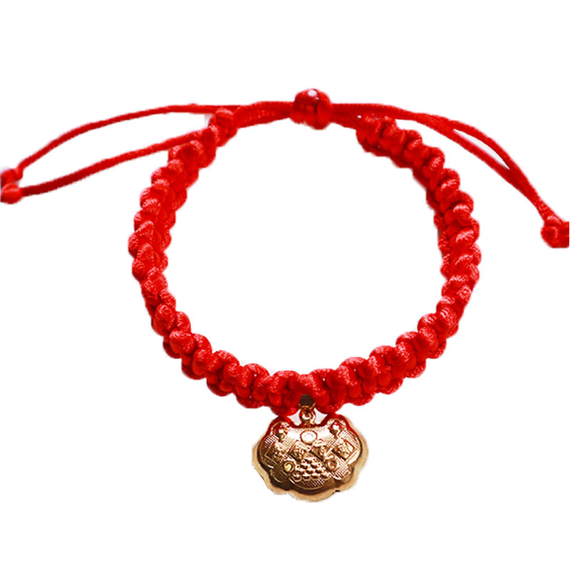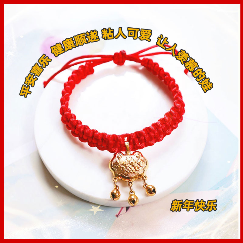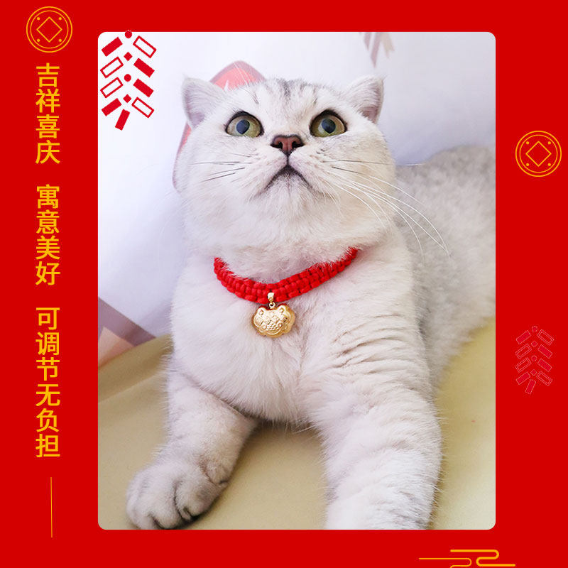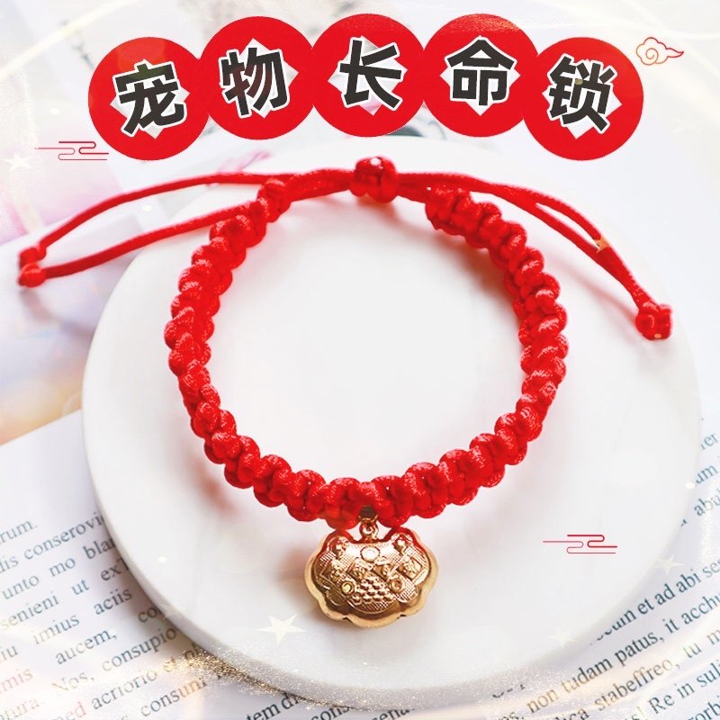📚 宠物平安锁可爱喜庆猫咪长命锁铃铛项圈新年红绳加长编织狗狗项链