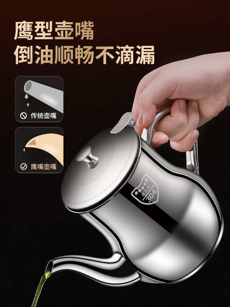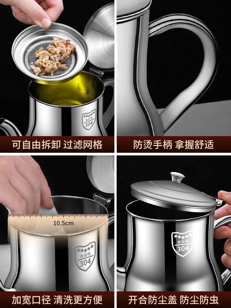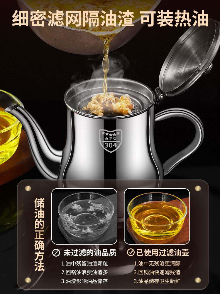 📚 304不锈钢油壶厨房防漏油罐家用油瓶过滤油渣壶装炒菜油的油壸小