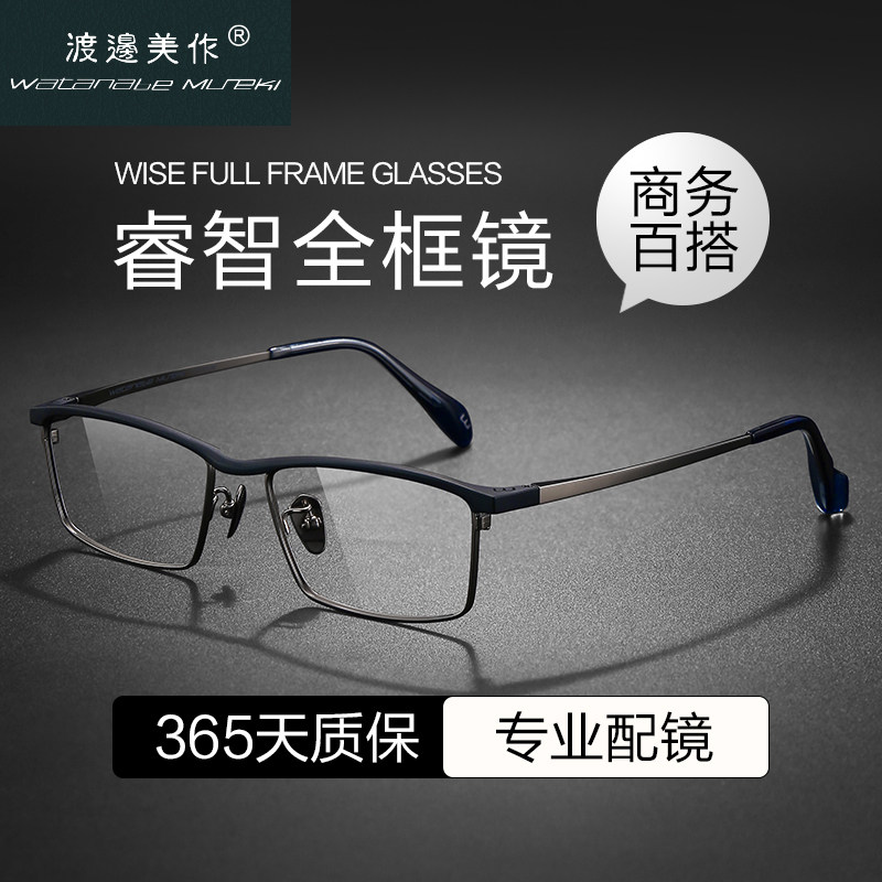 📚 渡边美作防蓝光眼镜男商务睿智全框航空记忆钛可配度数散光近视镜