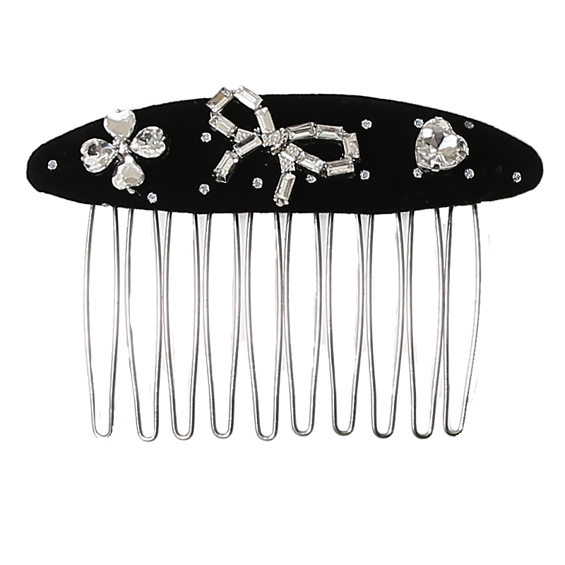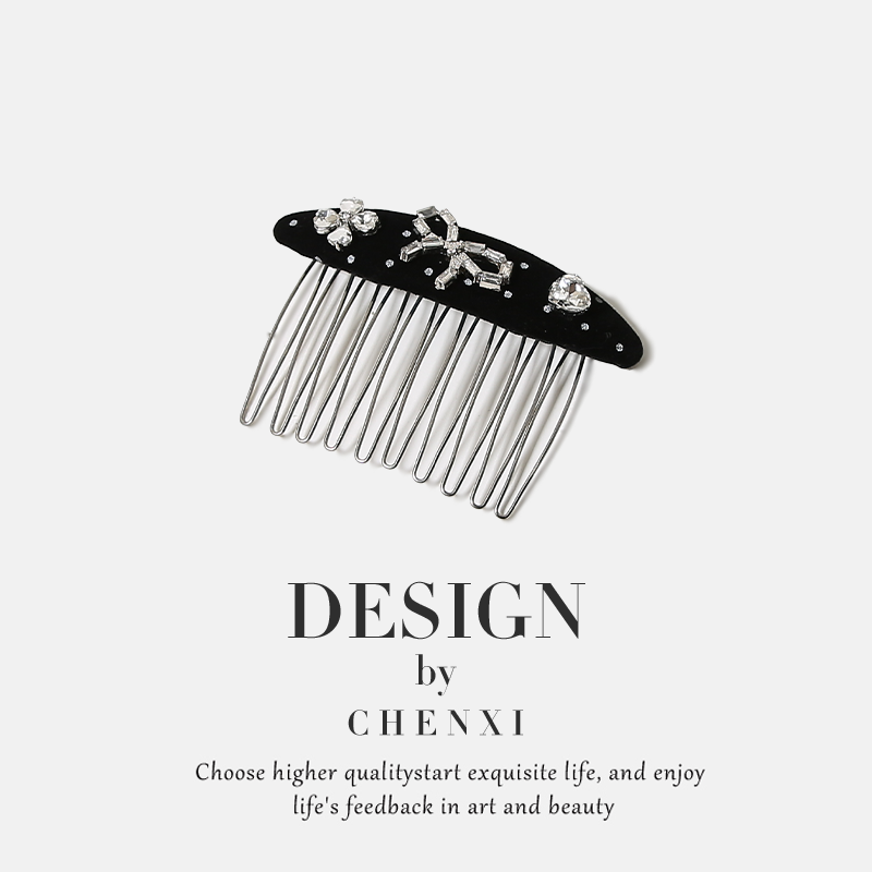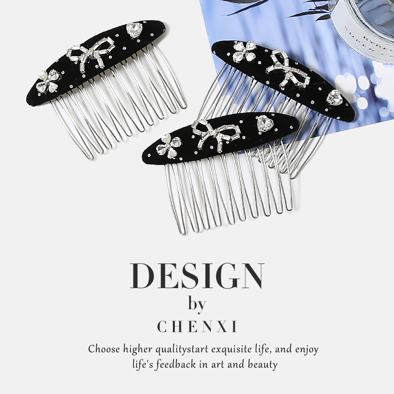 📚 黑色波点水钻发梳高颅顶蓬松碎发整理倒插梳子高级感精致洋气发饰