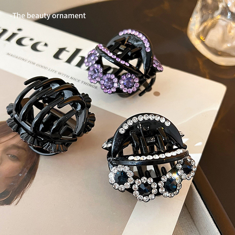 📚 水钻发卡女2024新款中号秋天发夹抓夹女发量少中老年人妈妈发饰品