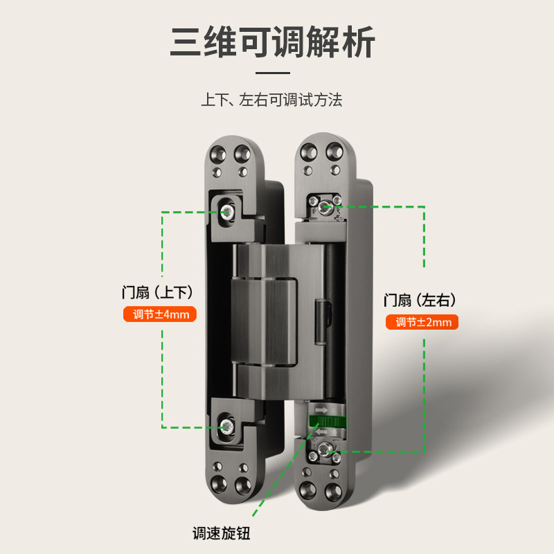 💫这款合页设计真的太巧妙了!隐藏式设计,让空间更显高级,而且超强的缓冲功能,让每次开关门都像是在享受一场静音体验。三维可调设计更是让门的大小和形状都能完美适配,实用性超强。