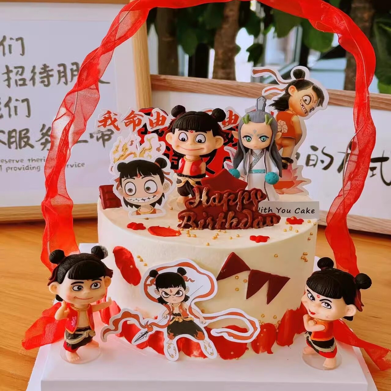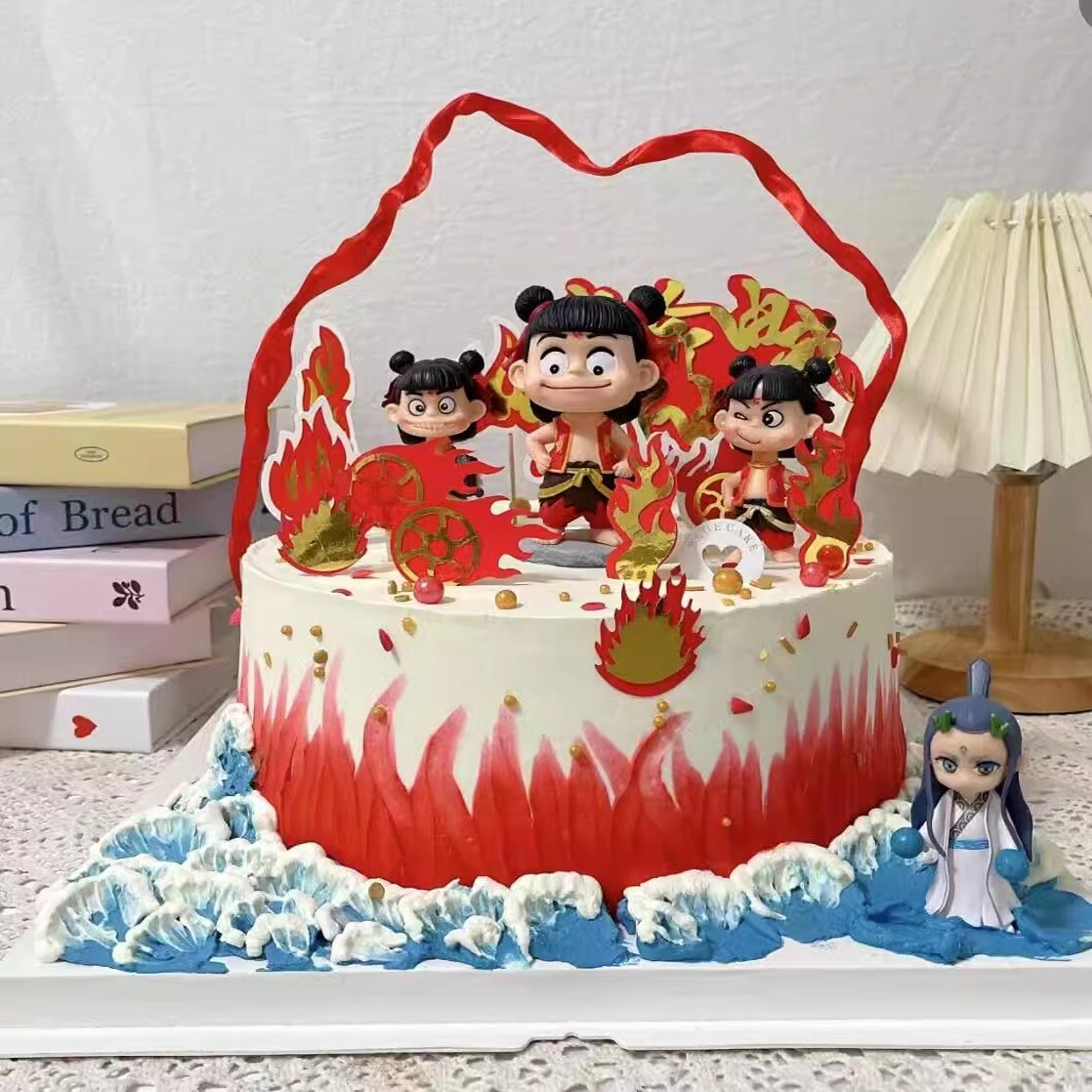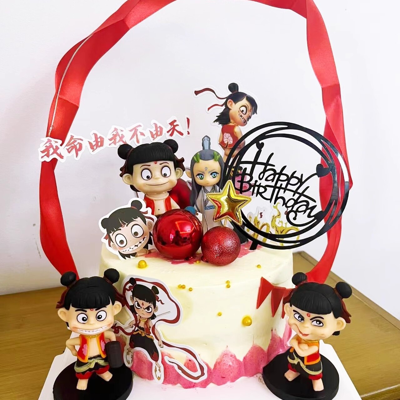 📚 变脸哪吒敖丙网红儿童生日蛋糕装饰摆件我命由我不由天烘焙插牌