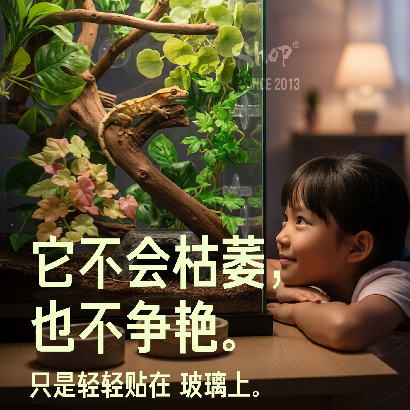 📚 爬宠饲养箱软胶仿真植物造景睫角躲避蛇守宫蜥蜴玻璃缸装饰带吸盘