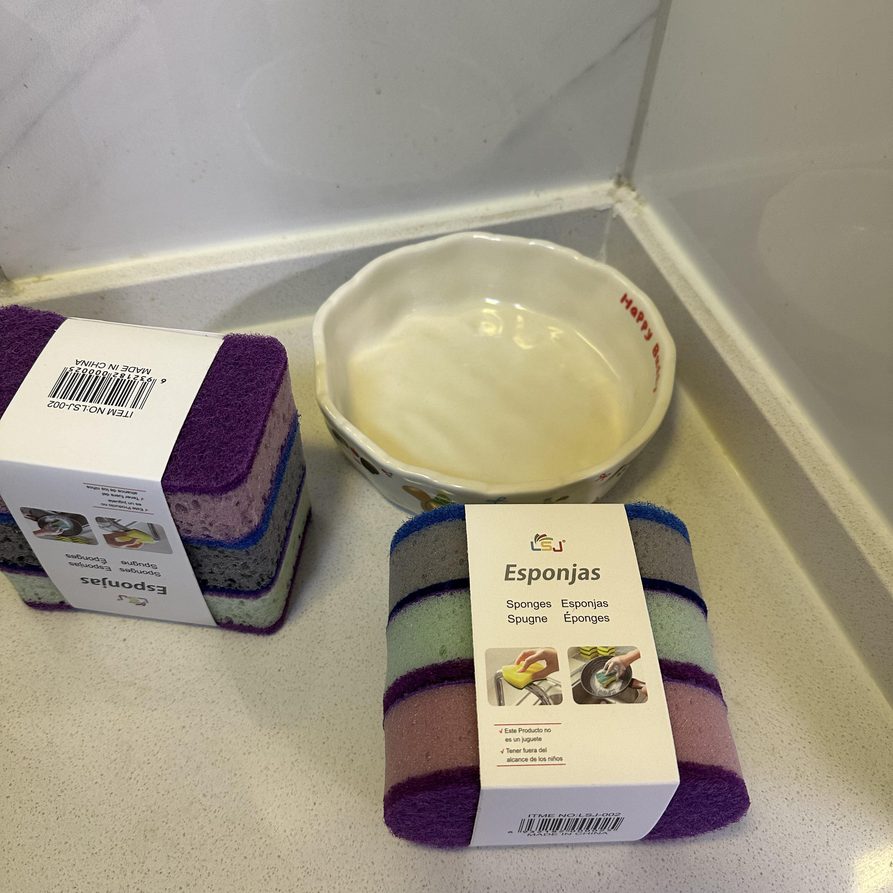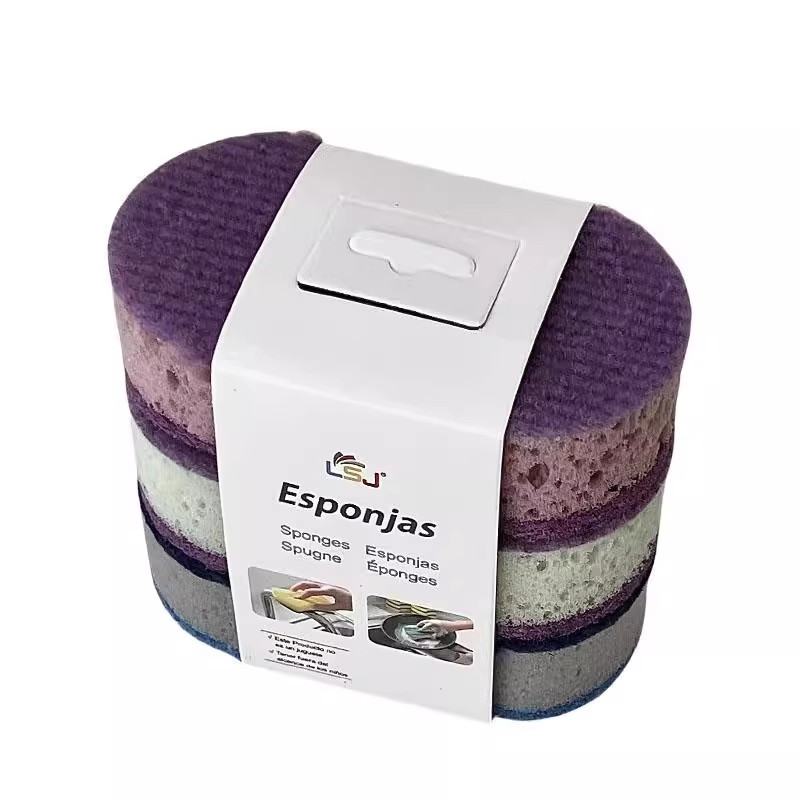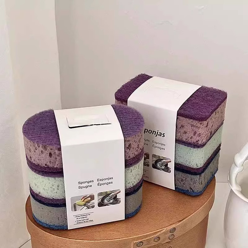 📚 厨房洗碗擦百洁布加厚高密度彩色洗碗海绵刷三支装不沾油锅刷双面