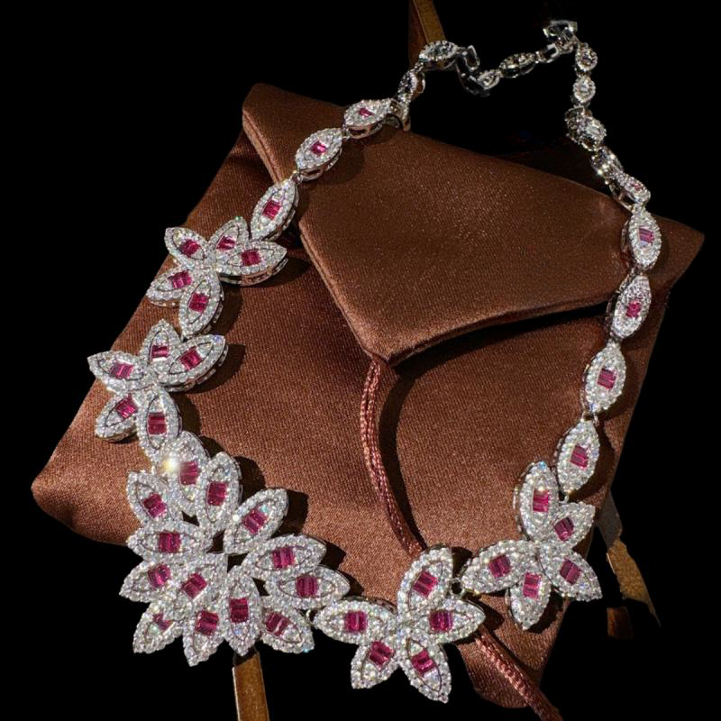 📚 帕帕拉恰胭脂粉花瓣宝石项链 苏富比 镀18K金 贵妃粉花朵锆石手链