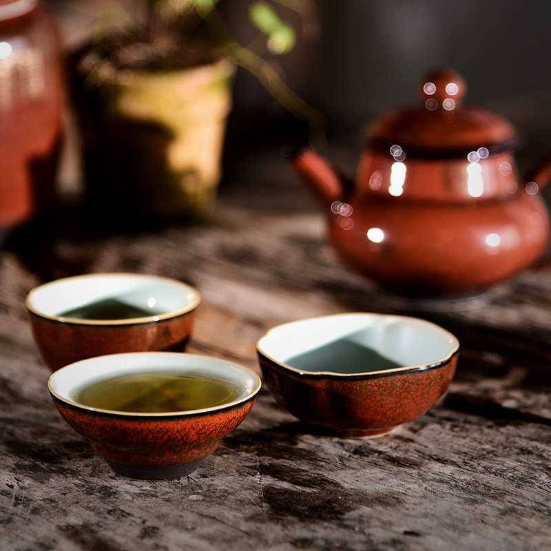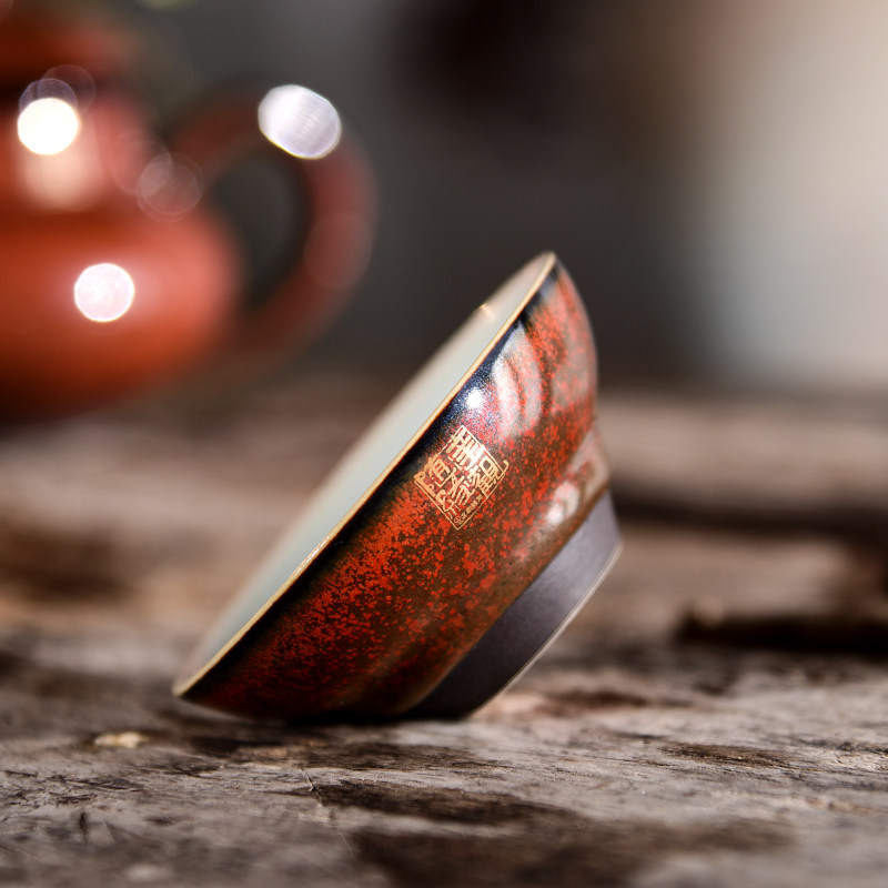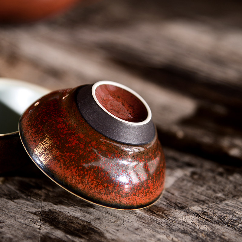 📚 成艺陶瓷功夫茶茶杯汝窑品茗杯窑变主人杯家用单个喝茶杯子铁绣红