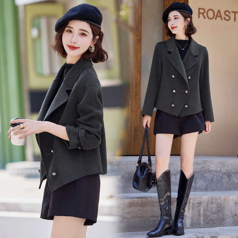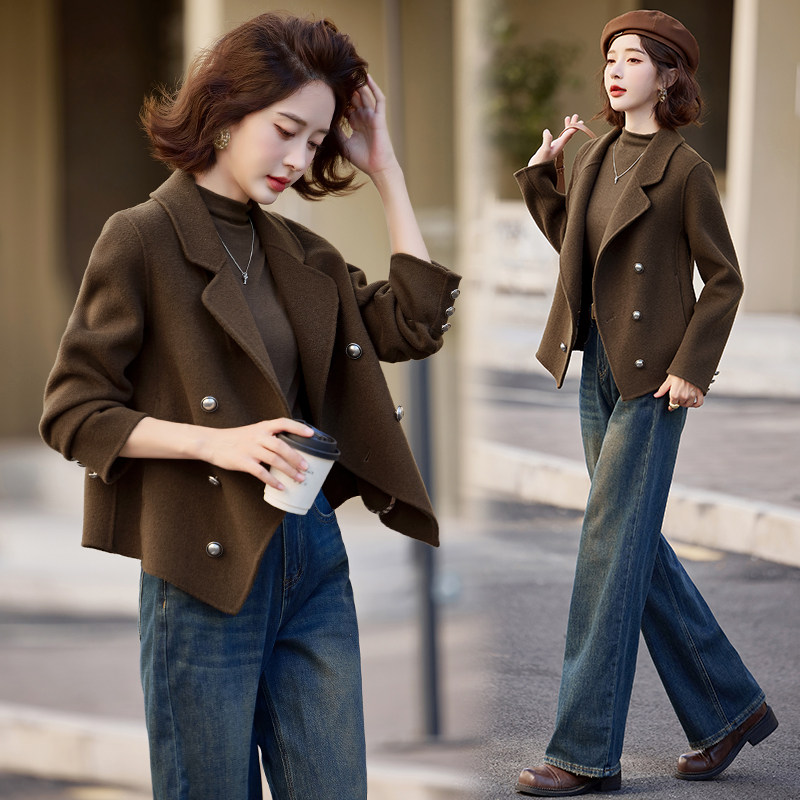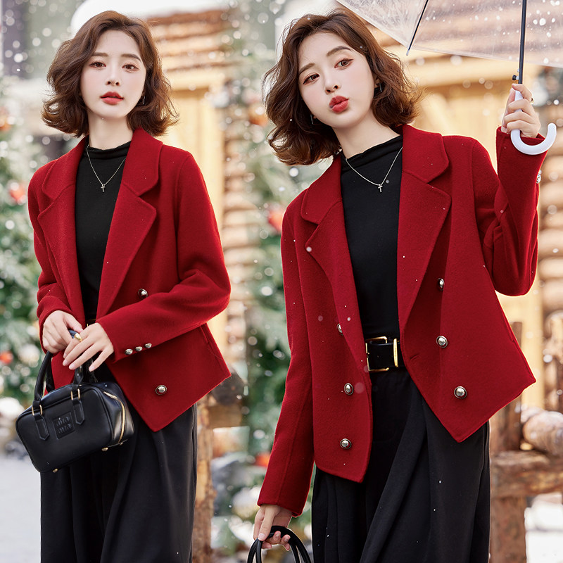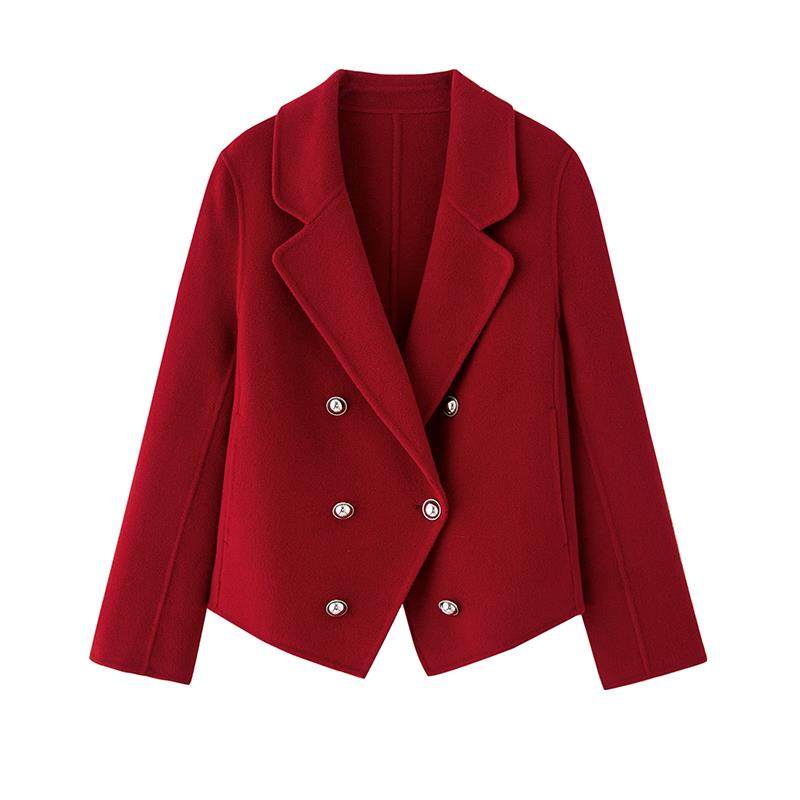 📚 红色短款小西装双面呢羊绒大衣女2025春秋新款小香风气质毛呢外套