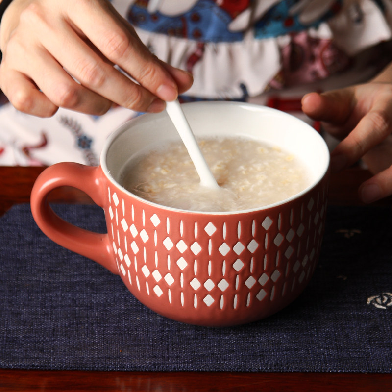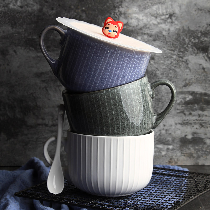 📚 微瑕北欧风大号陶瓷杯500ML600ML汤杯早餐杯燕麦杯牛奶杯带盖送勺