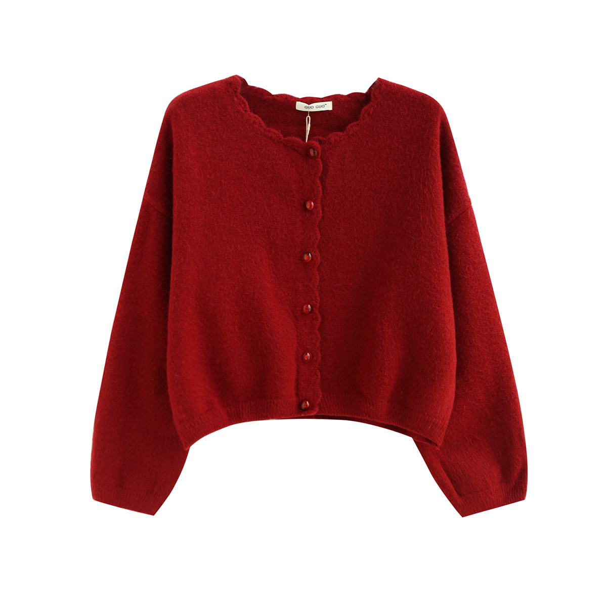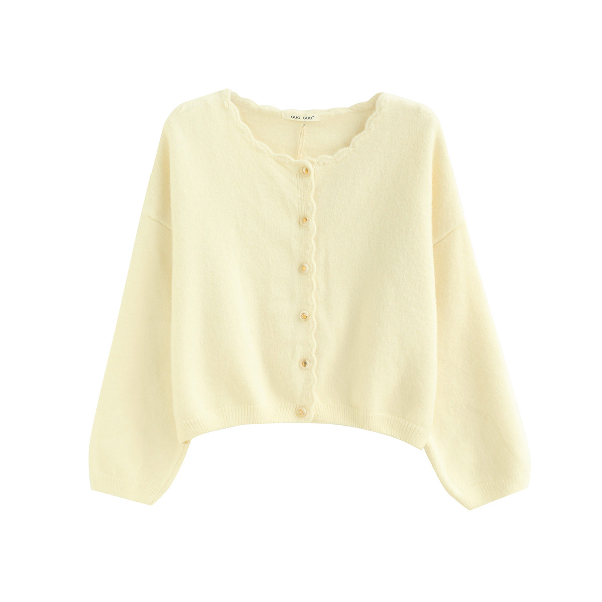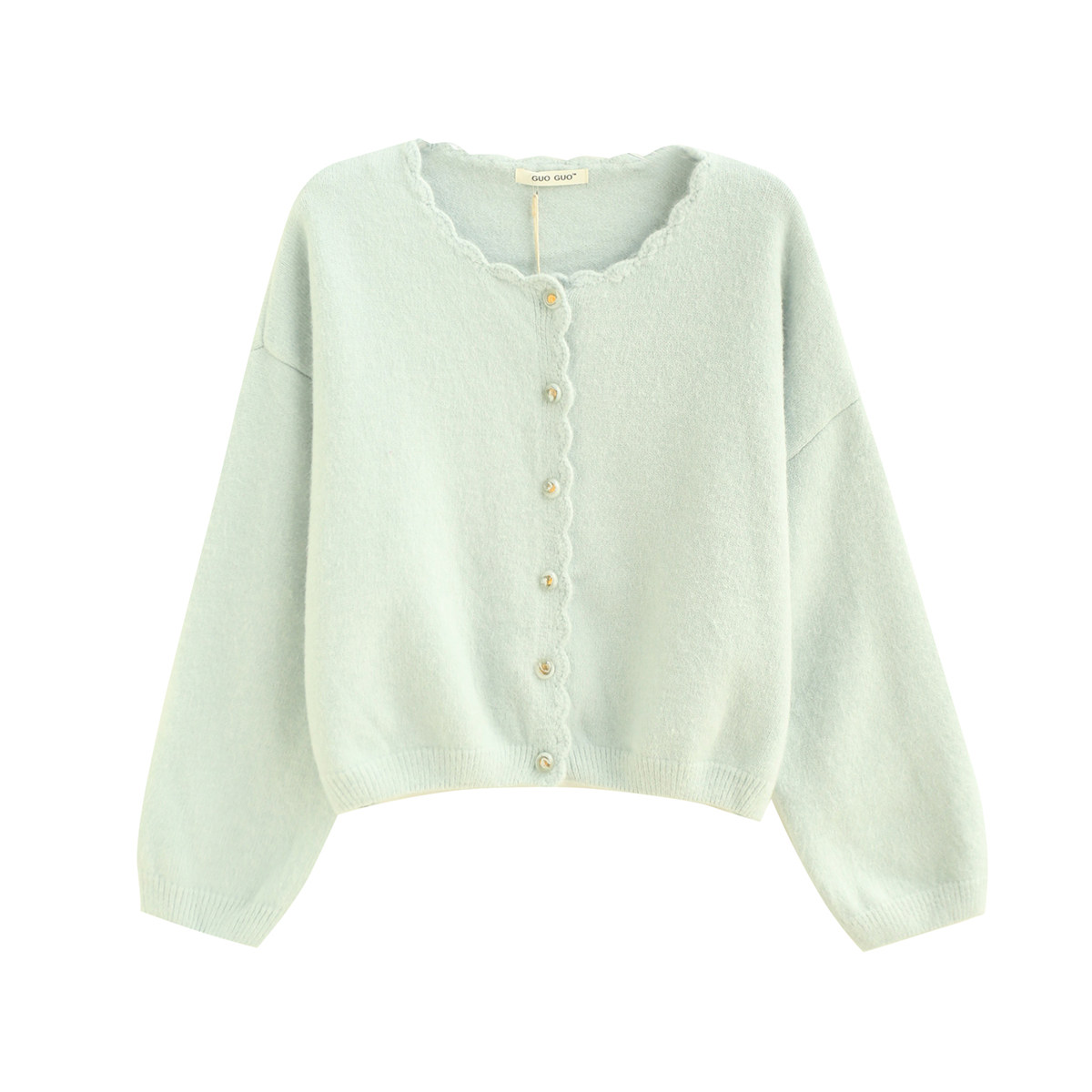 📚 拾野森冬装新款韩版温柔短款手钩花边宝石扣圆领长袖毛衣开衫外套