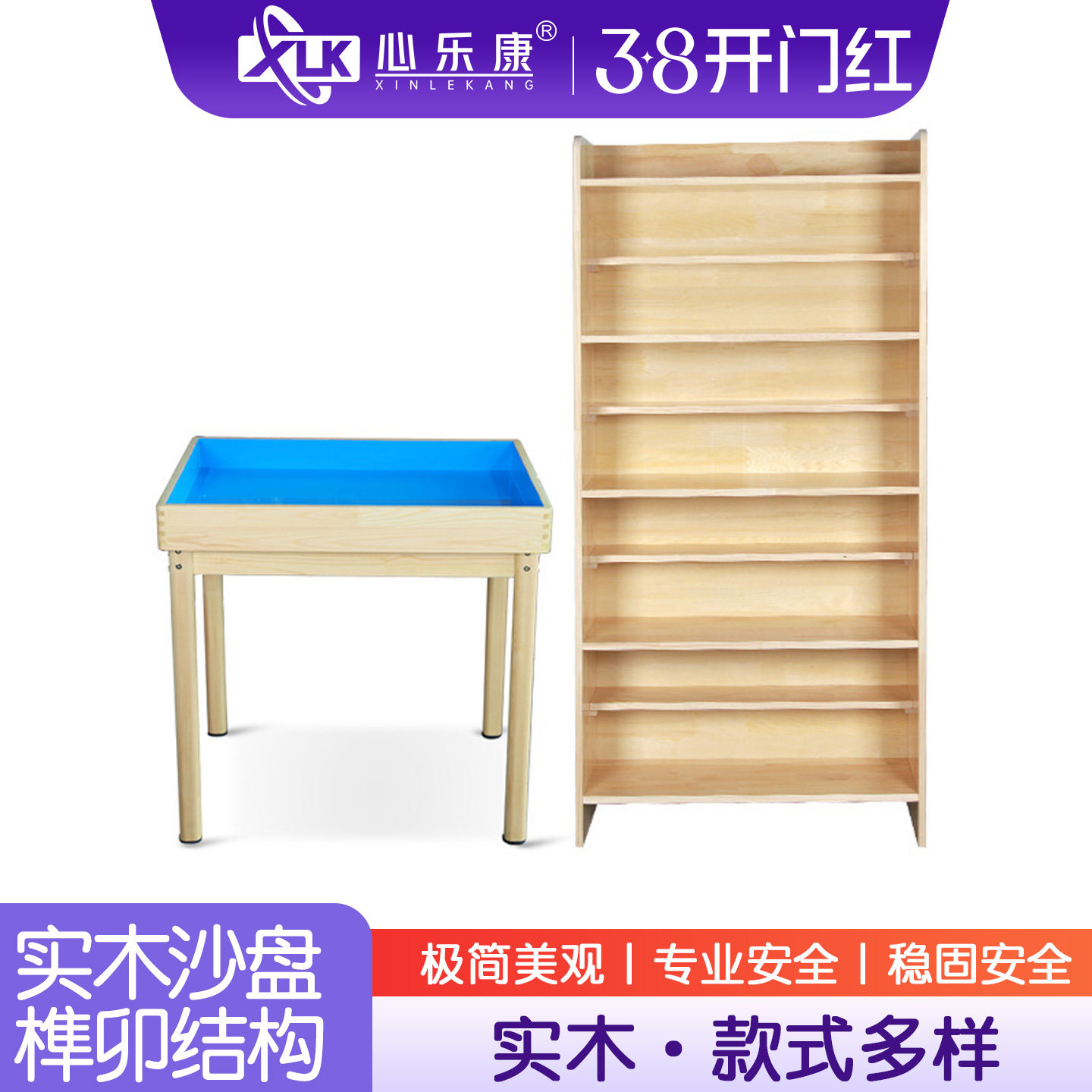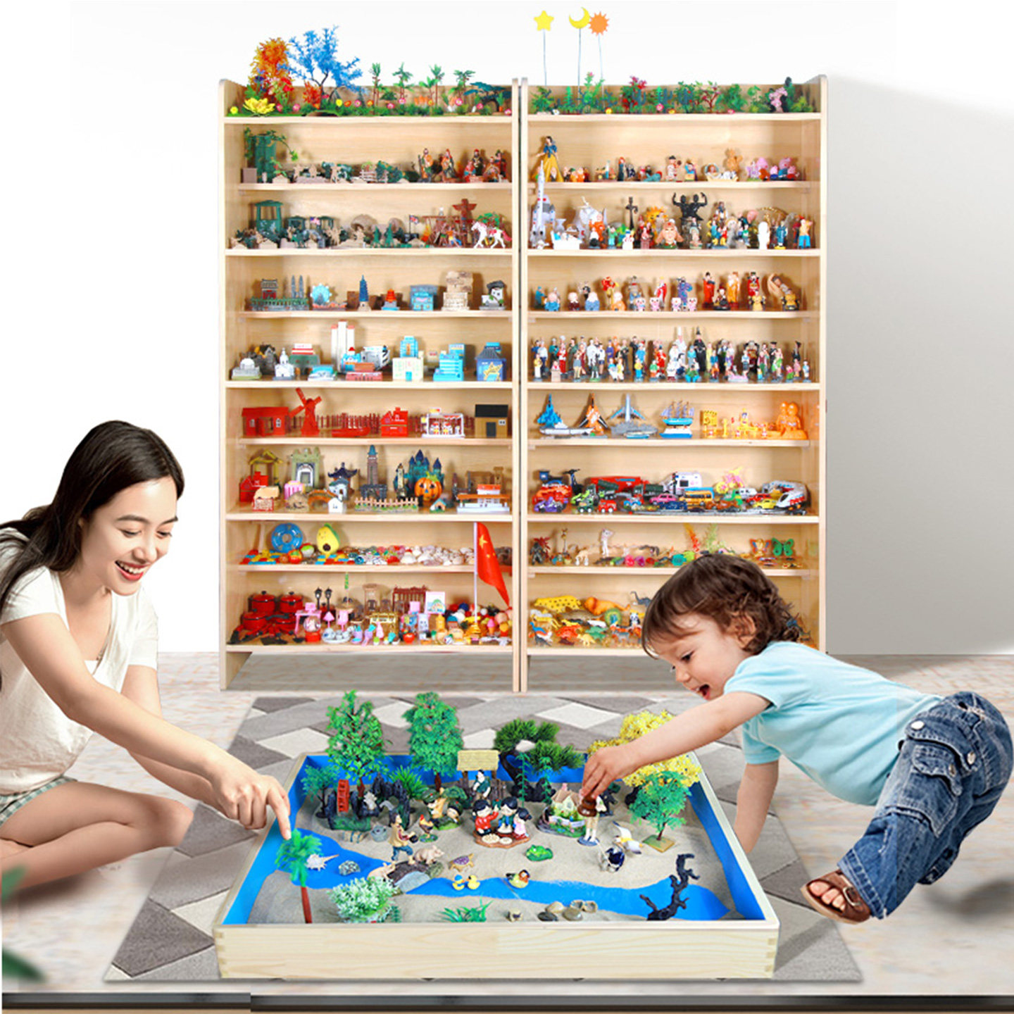 📚 心理咨询室实木标准沙盘玩具团体折叠儿童积木桌九层陈列架展示柜