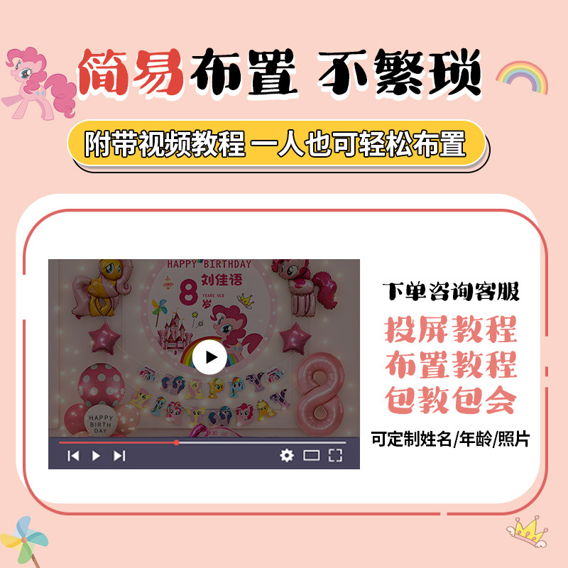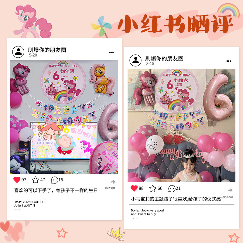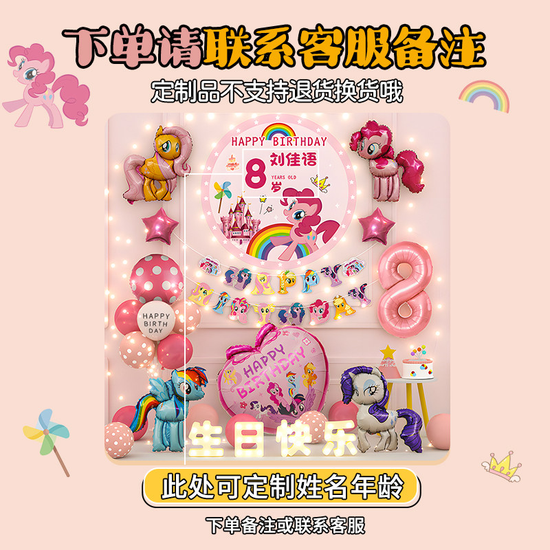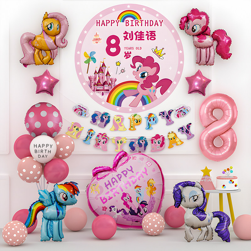 📚 小马宝莉女孩生日装饰场景布置快乐小气球派对儿童仪式感家庭简单