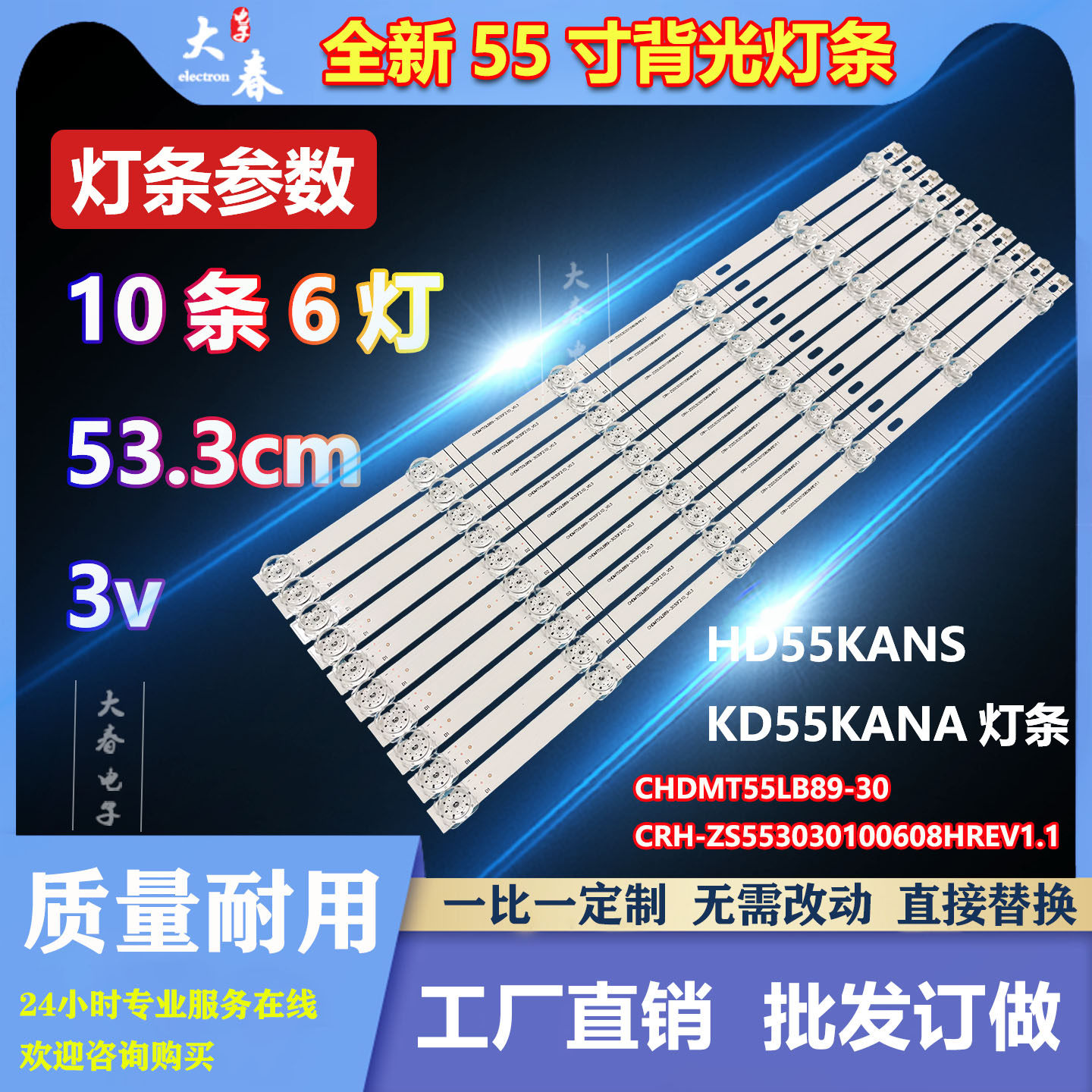 📚 适用华为HD55KANS KD55KANA液晶电视背光LED灯条 10条6灯 53.3CM
