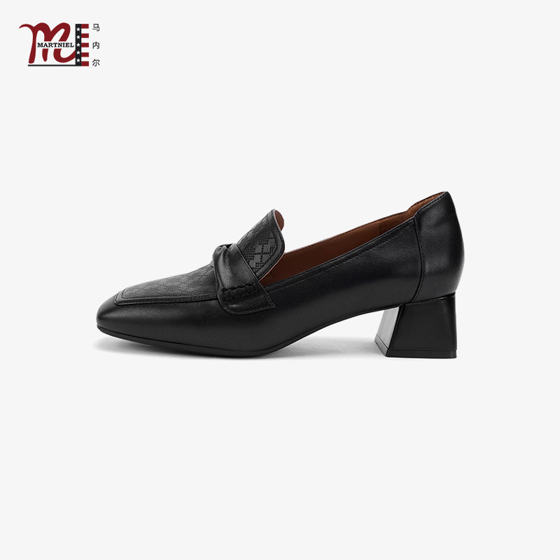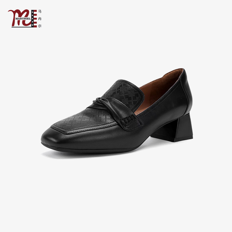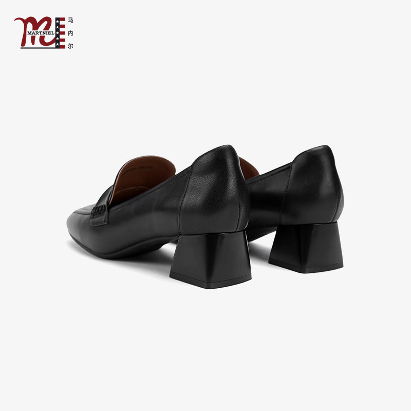 📚 马内尔通勤英伦风真皮乐福鞋女一脚蹬粗跟软底百搭黑色豆豆鞋