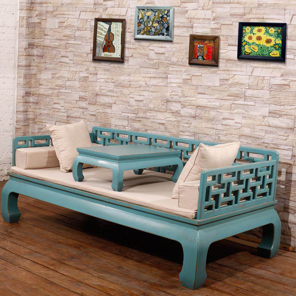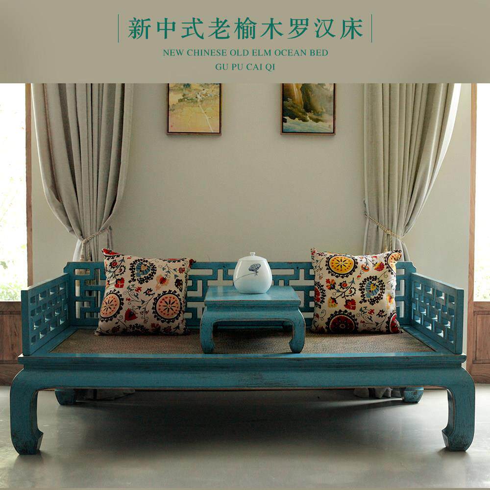 📚 古朴彩漆新中式仿古家具老榆木罗汉床实木现代明清多功能沙发床榻