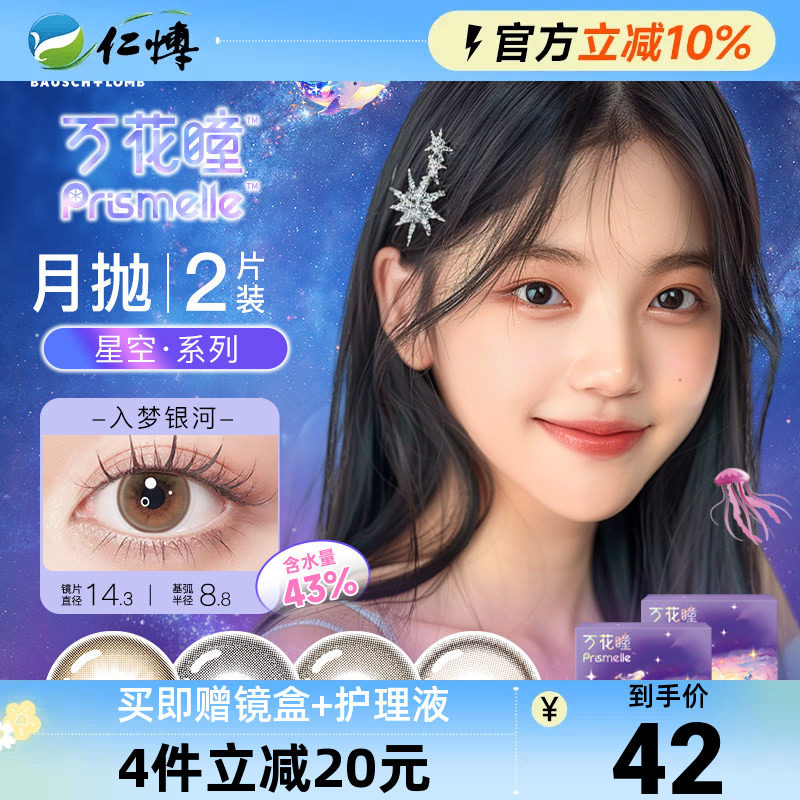 📚 博士伦万花瞳美瞳月抛2片星空幻想彩色隐形眼镜大小直径近视进口