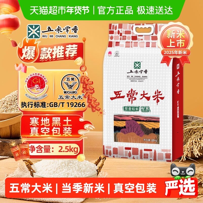 📚 五米常香五常大米稻香米2.5kg东北大米粳米一级2025年新米真空装