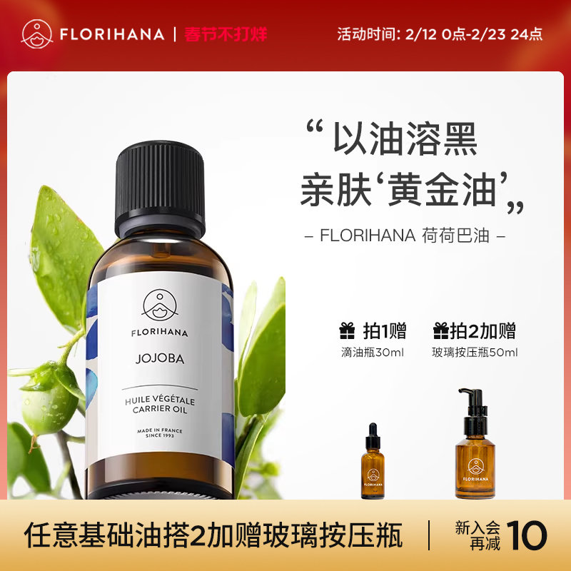 📚 Florihana霍霍巴籽荷荷巴油黑头卸妆基础油面部精油脸部按摩刮痧