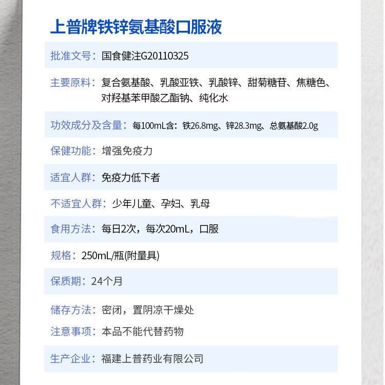 📚 上普铁锌氨基酸口服液中老年成人男女安基酸滋补营养品4瓶1000ml