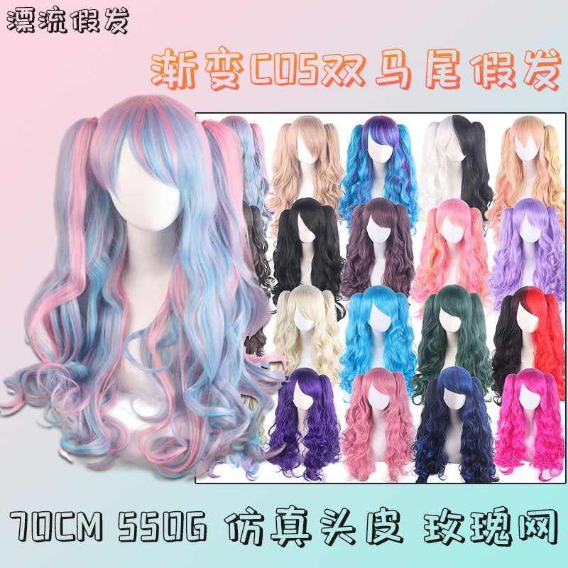 📚 漂流假发 双马尾COSplay假发毛胚Lolita少萝莉渐变虎夹假毛长卷发