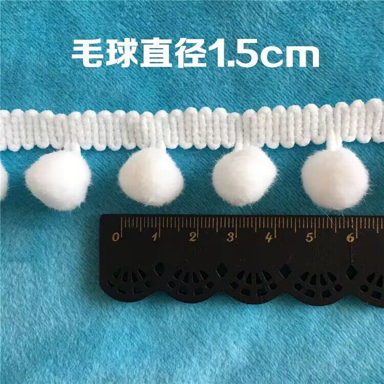 📚 清仓18米长白色粉色毛球花边辅料手工diy毛球窗帘流苏圆绒球花边