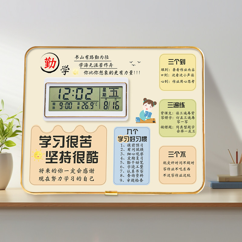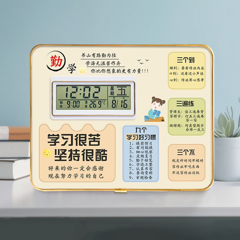 📚 学生闹钟学习励志摆台生日礼物书桌桌面鼓励摆件照片板日历万年历