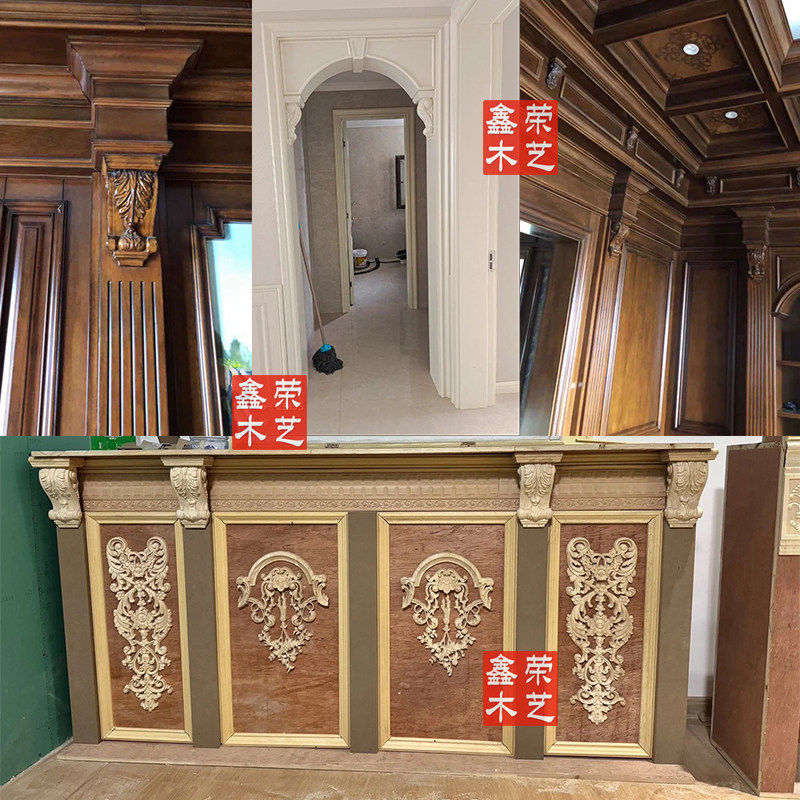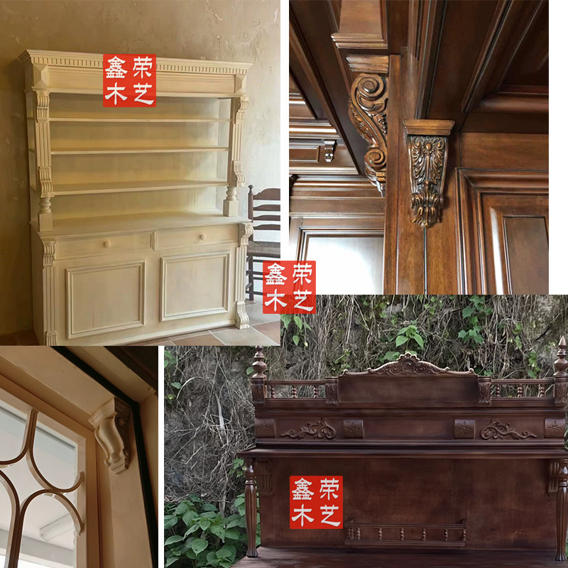 📚 东阳木雕花柱头牛腿实木柱头欧式梁托中式罗马柱冒头装修雕刻定制