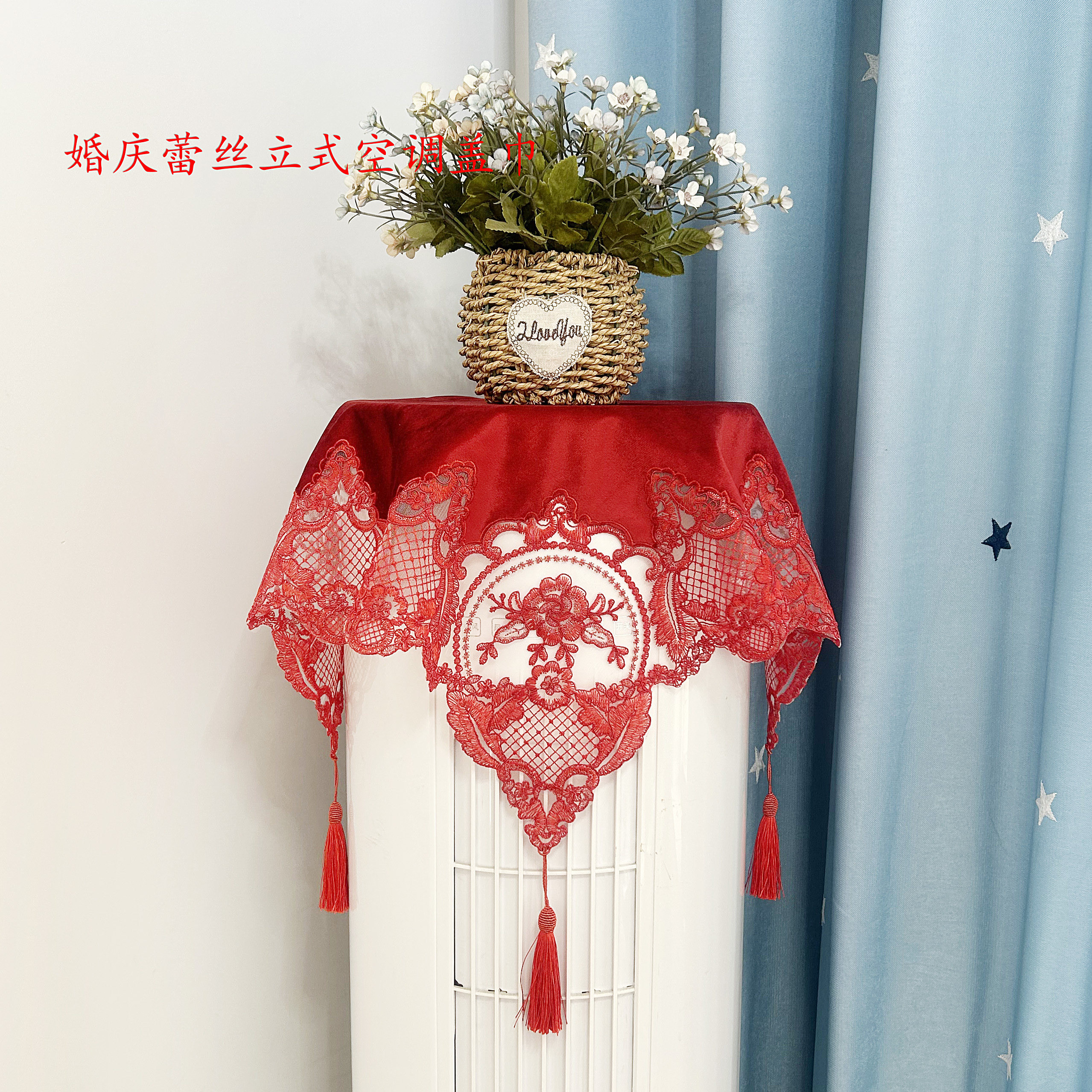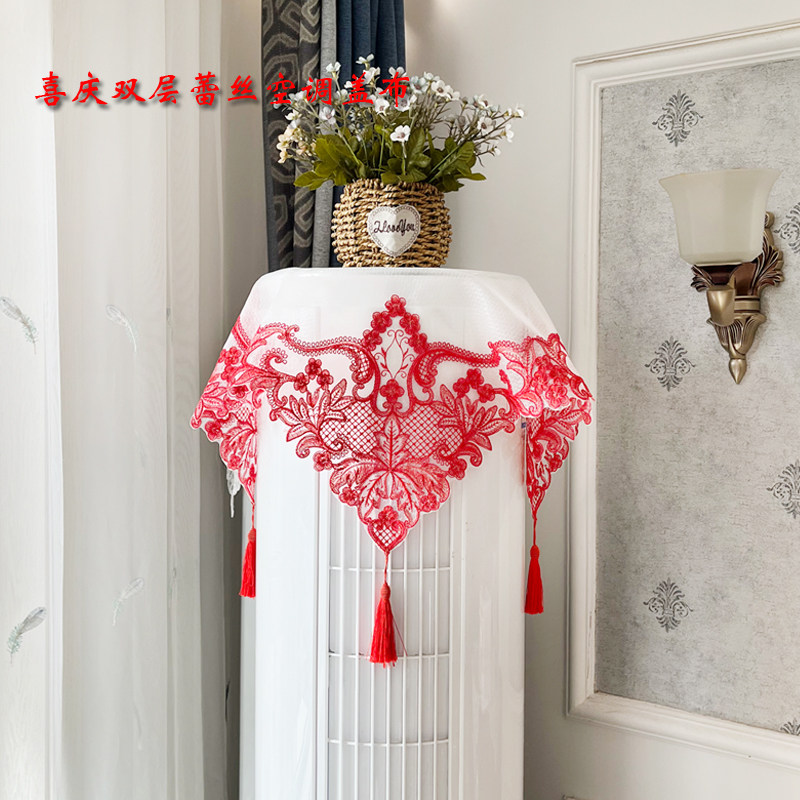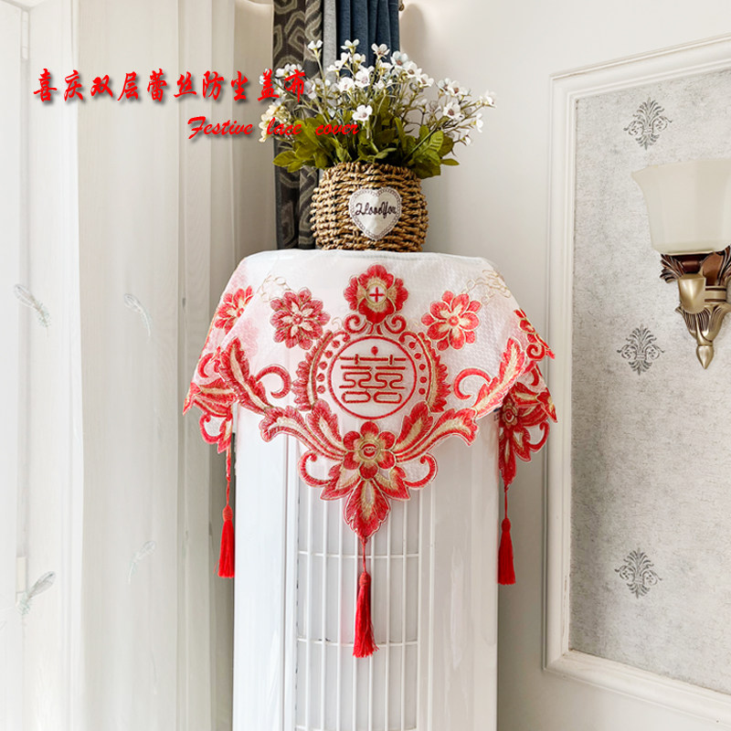 📚 喜庆圆柱空调防尘罩中国红新房婚房布置红色盖巾方形空调帘大红帘