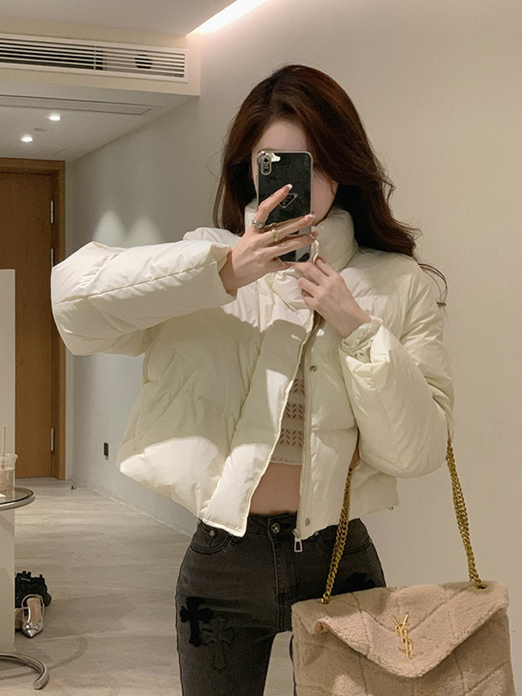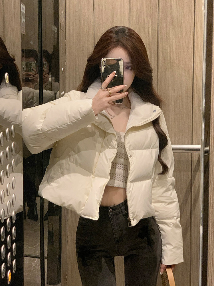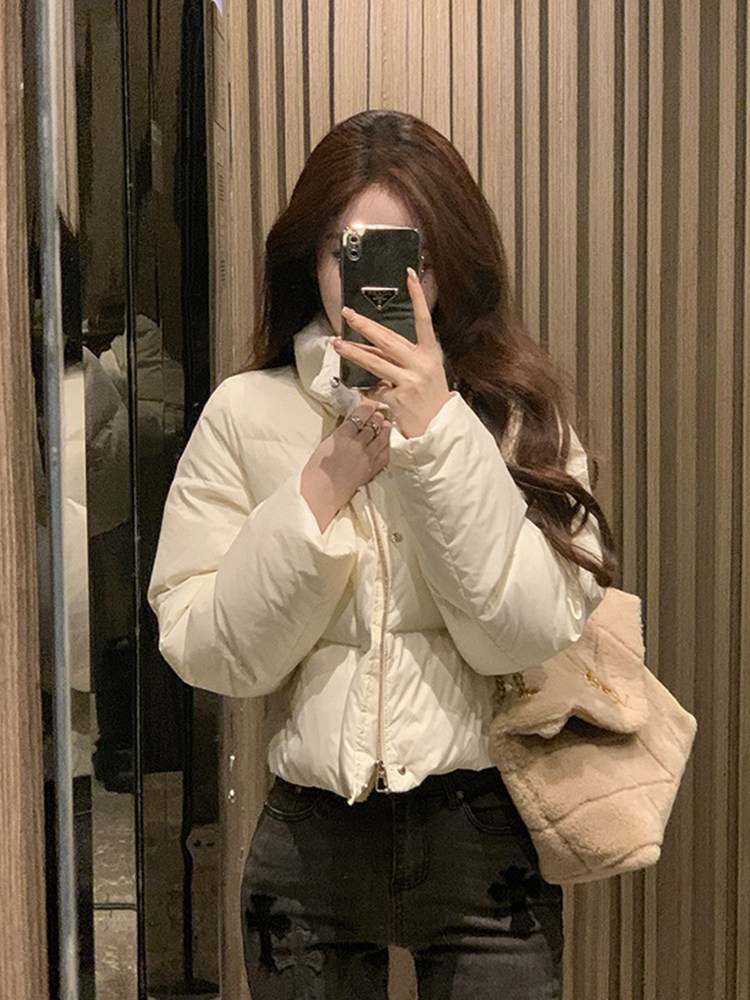 📚 90白鸭绒米白色羽绒服女短款脱卸帽小个子冬季韩版设计加厚绒外套