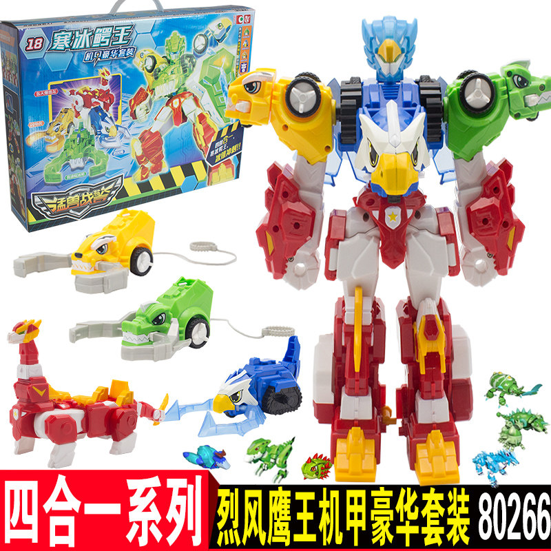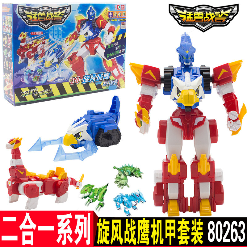 📚 正版猛兽战警玩具烈风鹰王80265百兽虎王暴雷变形合体机甲套装