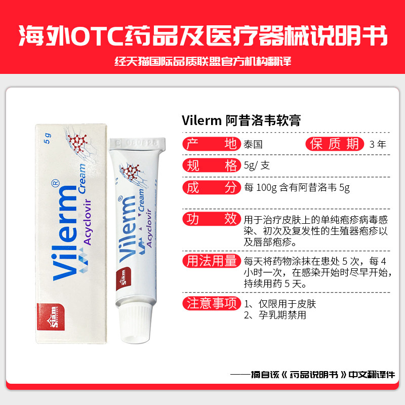 📚 泰国siam阿昔洛韦软膏单纯疱疹带状疱疹感染抗病毒嘴唇疱疹乳膏
