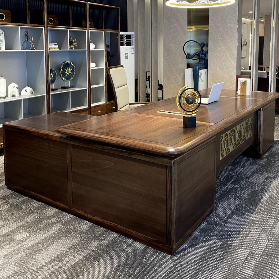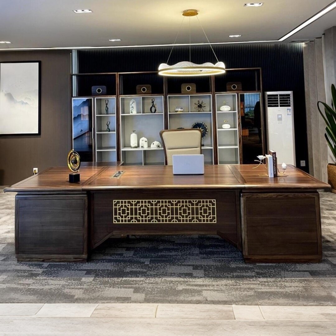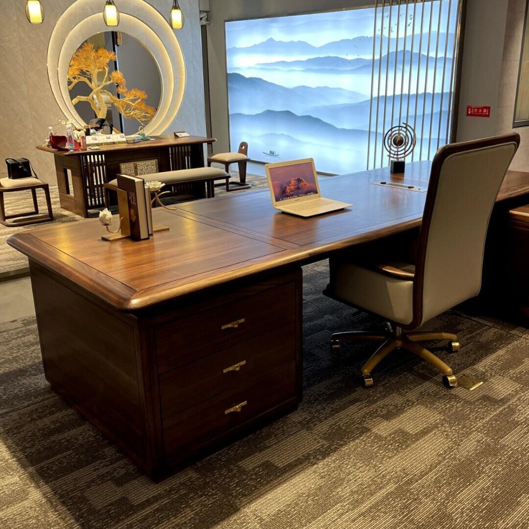 📚 新中式实木老板桌办公桌轻奢现代高级感北美黑胡桃大班台2025新款