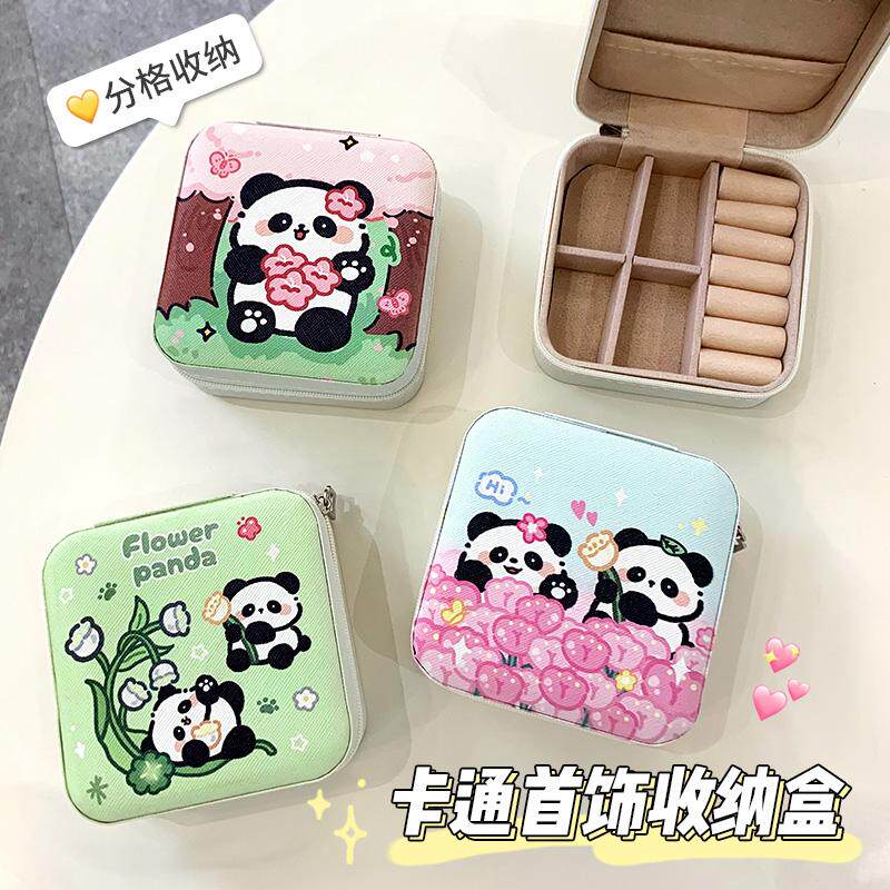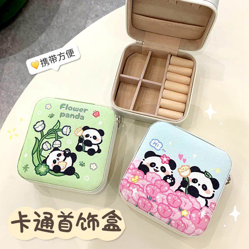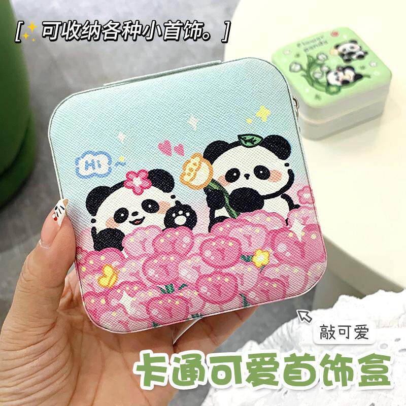 📚 卡通熊猫首饰盒便携手饰品耳钉戒指收纳盒小型精致项链盒旅行出门