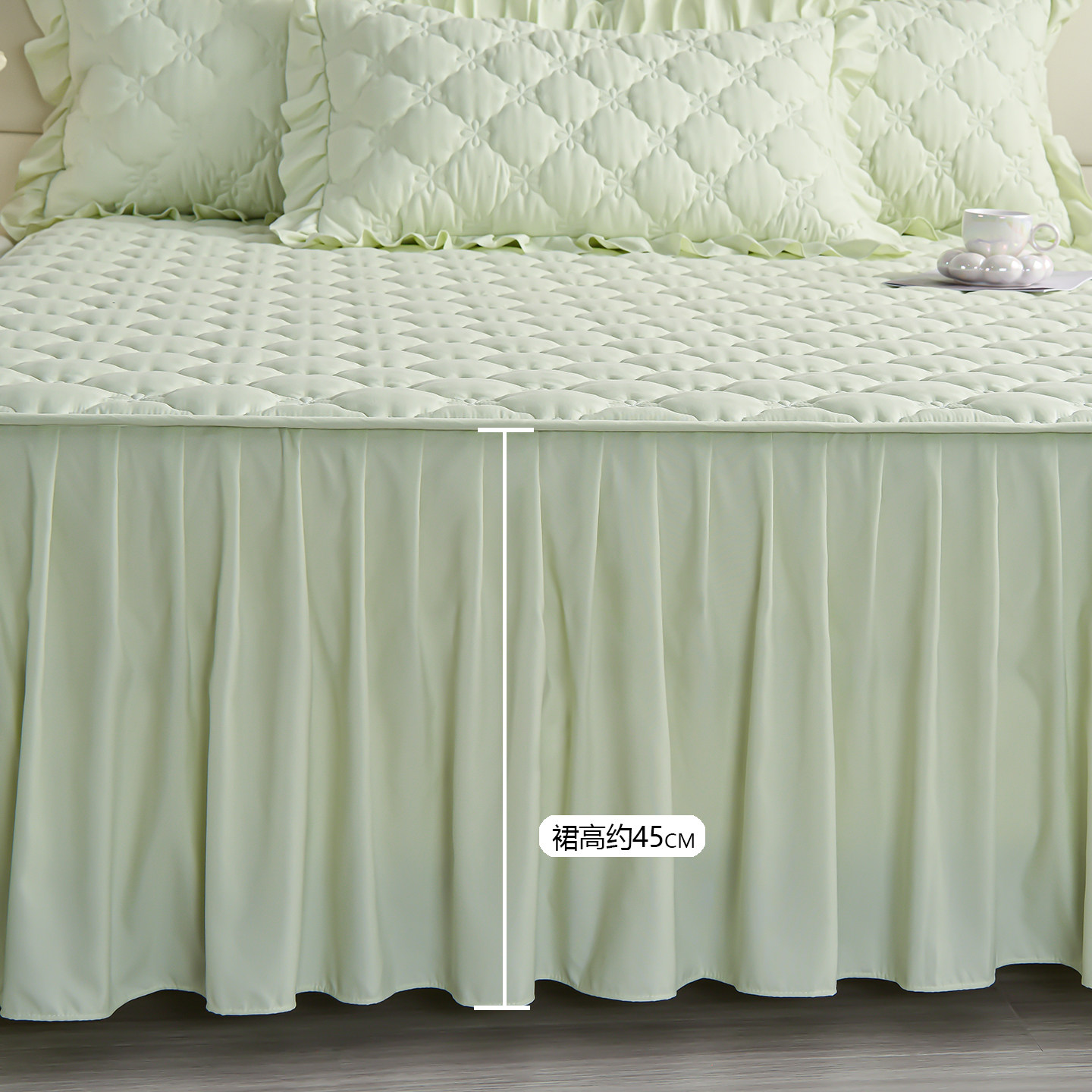 📚 简约纯色夹棉床裙单件公主风遮丑下摆带裙边床罩三件套防尘床笠套