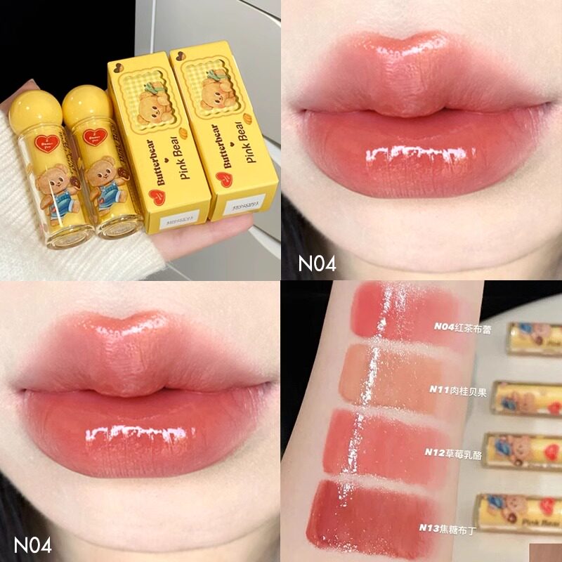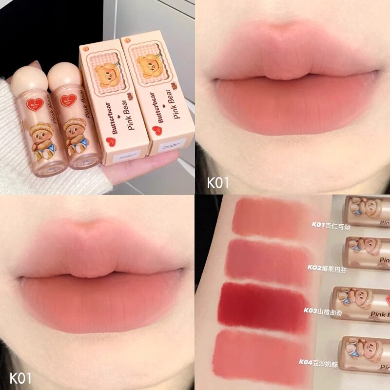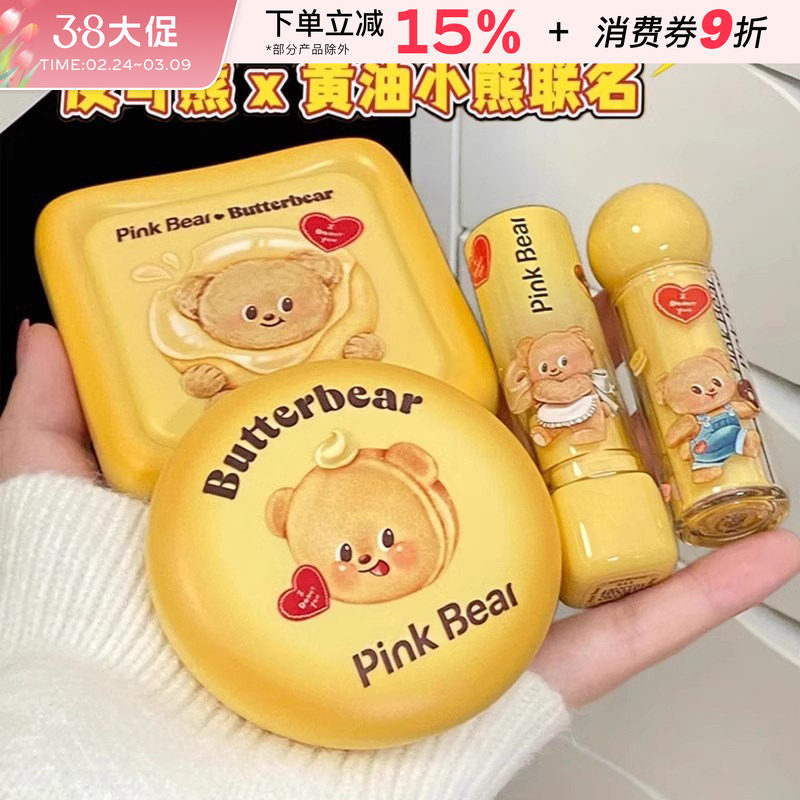 📚 pinkbear皮可熊联名黄油小熊唇蜜口红水光唇釉哑光粉饼眼影盘女