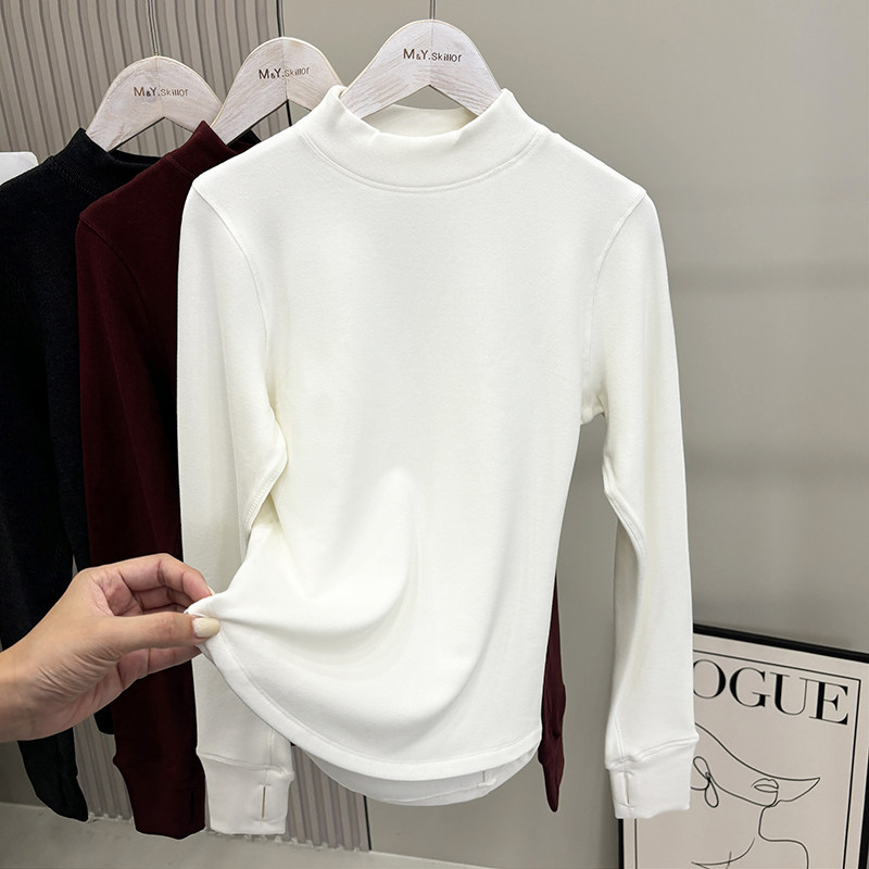 📚 超软糯~Iu同款秋冬保暖半高领纯色真德绒打底衫女修身运动T恤上衣