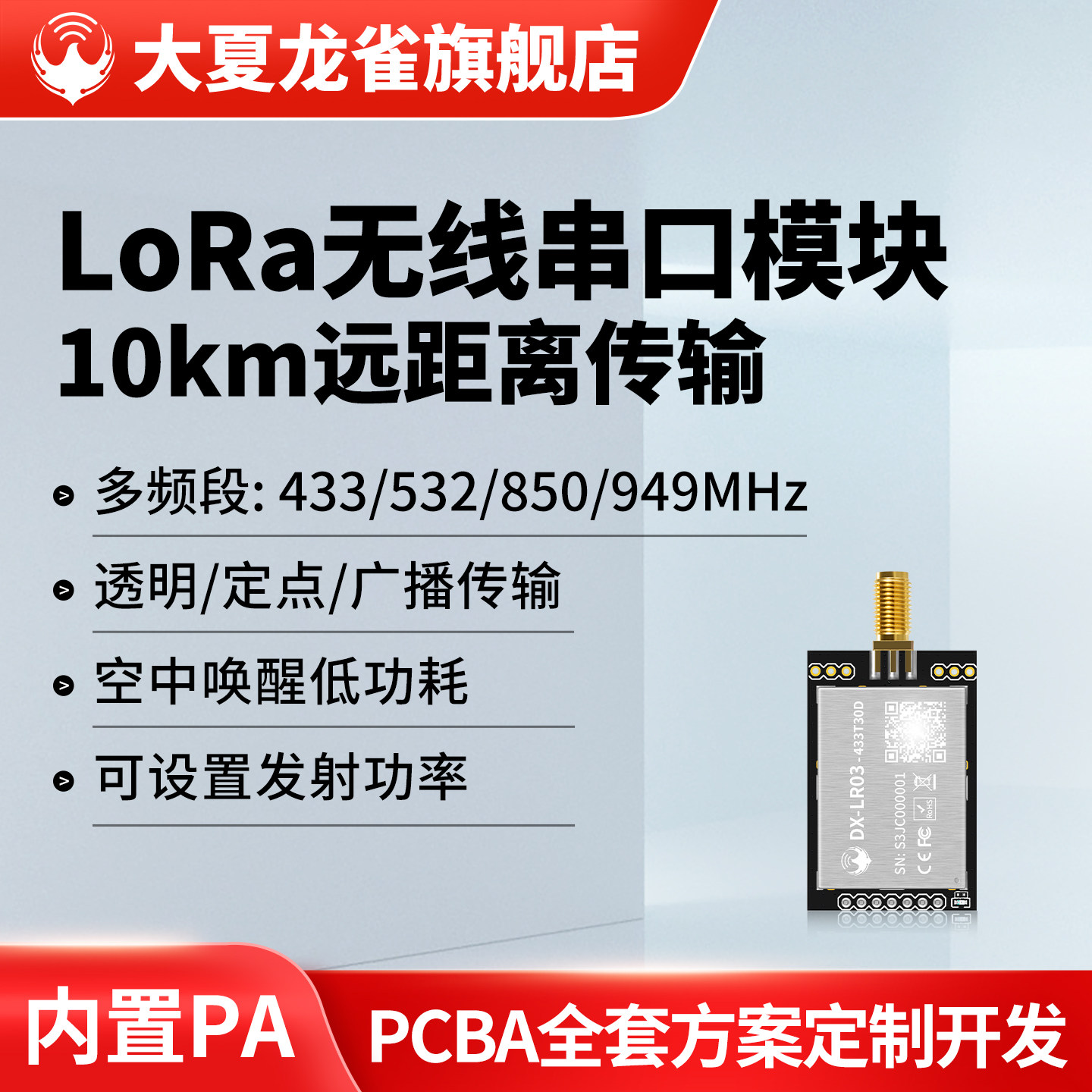 📚 大夏龙雀LoRa模块无线串口通信10公里超远距离发射接收发433MHz