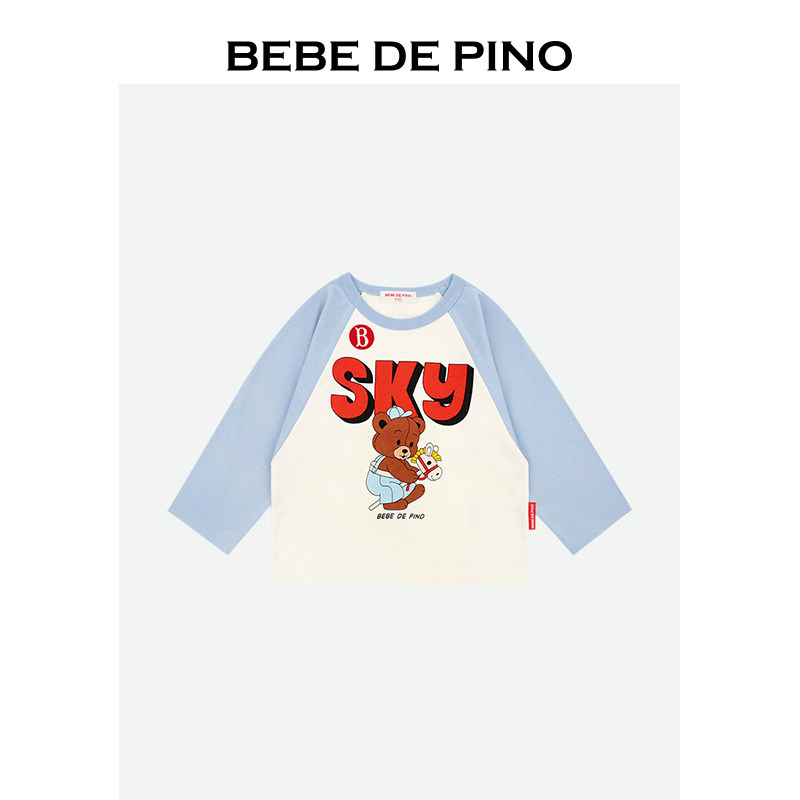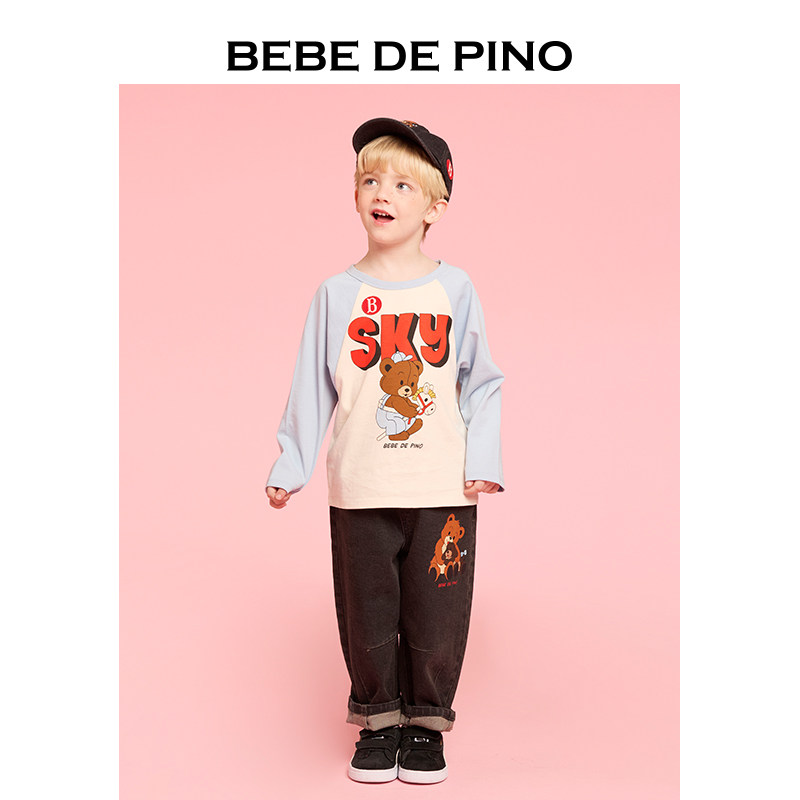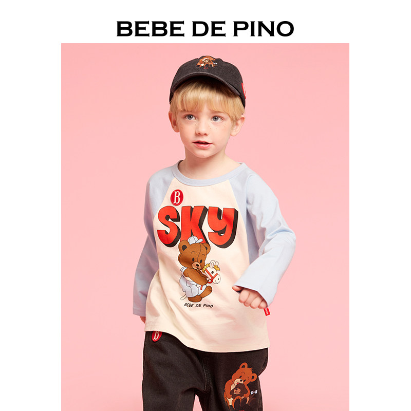 📚 BEBEDEPINO贝贝品诺童装25秋新款儿童插件色拼长袖T恤休闲百搭