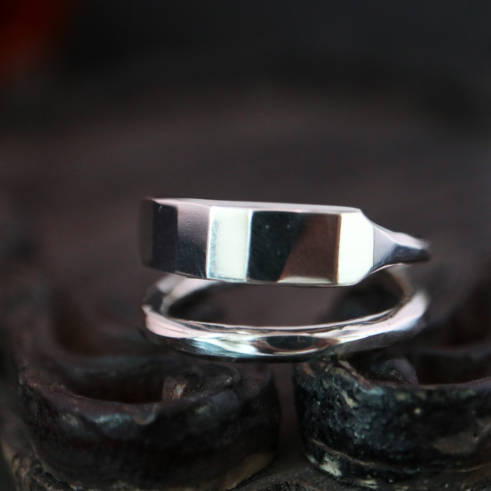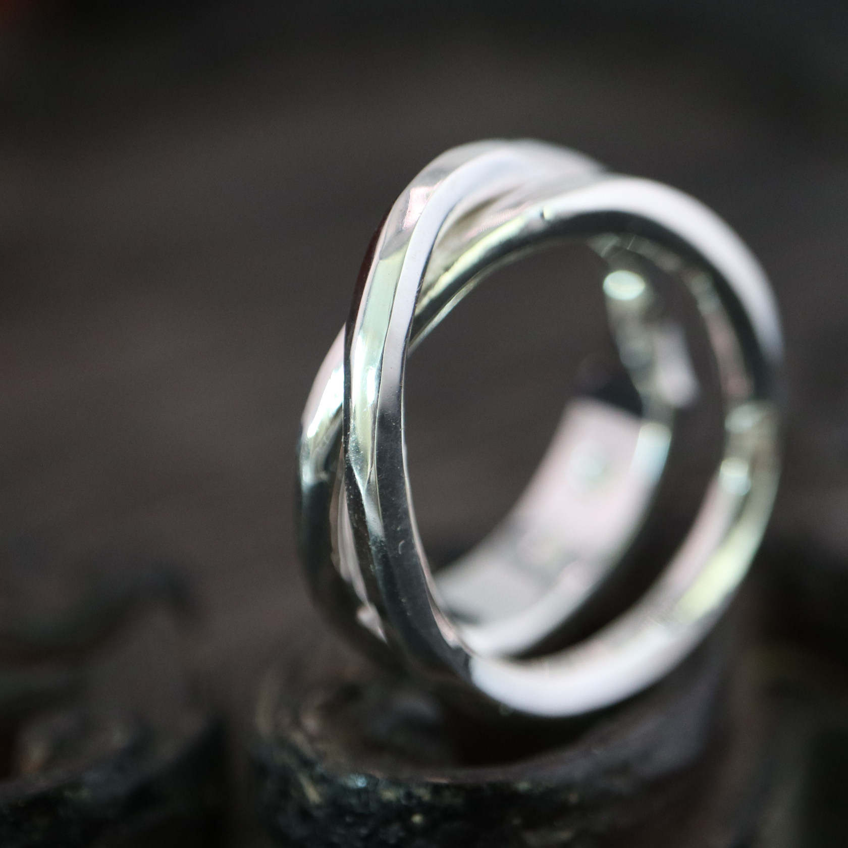 📚 铁头的店Werkstatt Munchen手工锤纹缠绕交叉戒指 情侣纯银指环