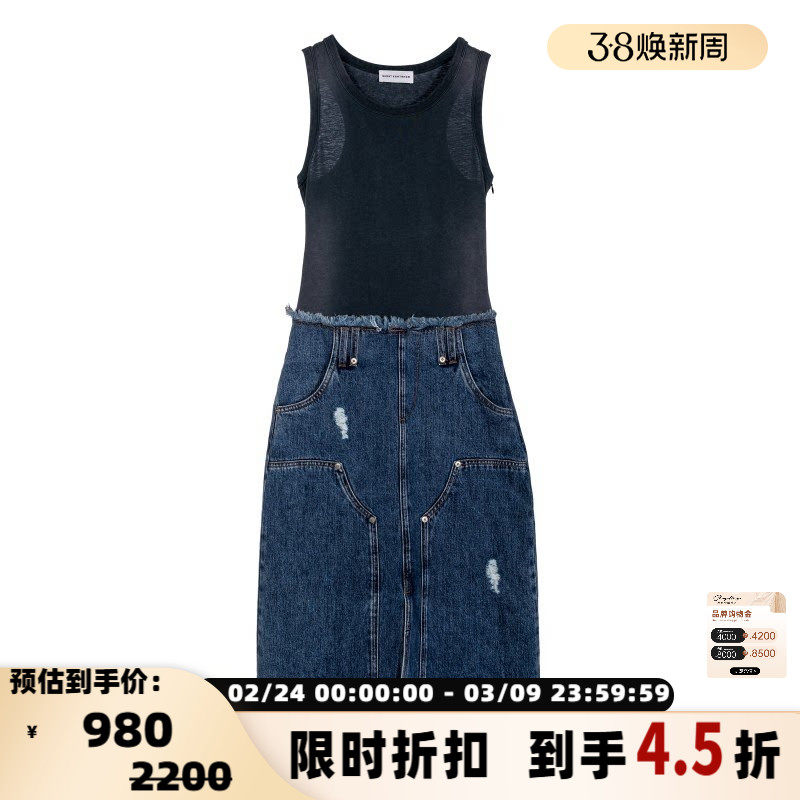 📚 SHORT SENTENCE /短句女士背心式牛仔拼接连衣裙银泰百货301574