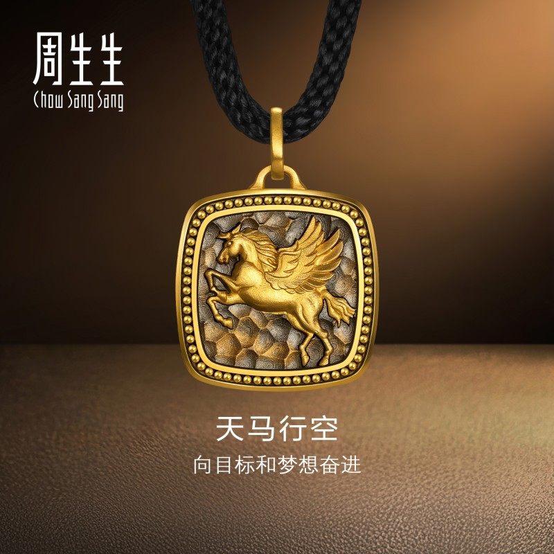 📚 周生生华宇黄金足金酷黑系列天马行空颈饰生肖男士锤纹项链96136Z