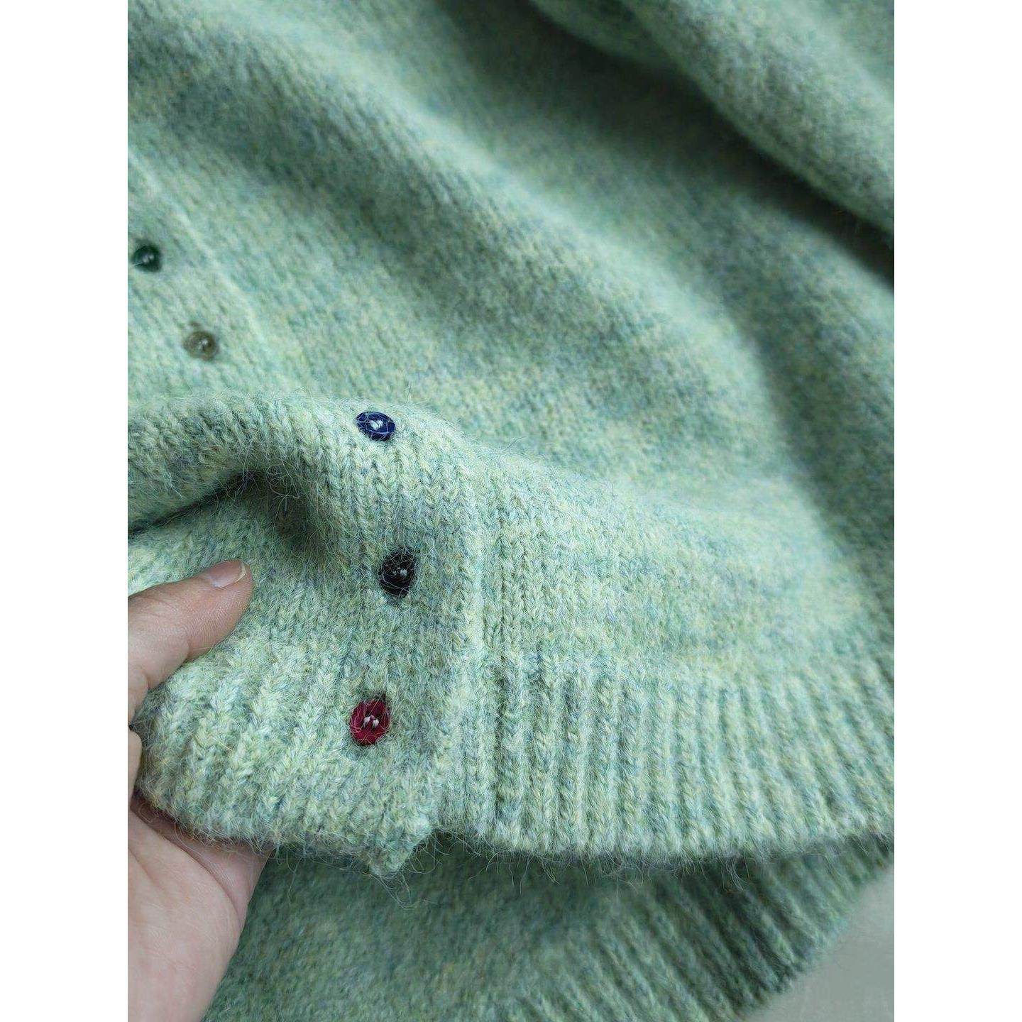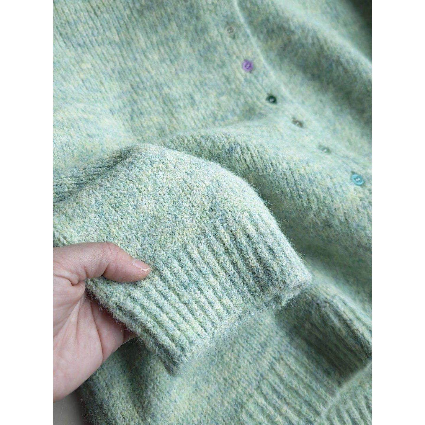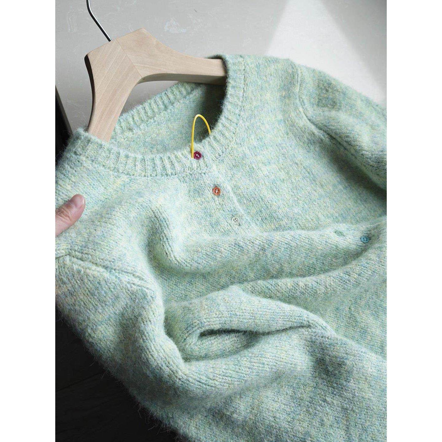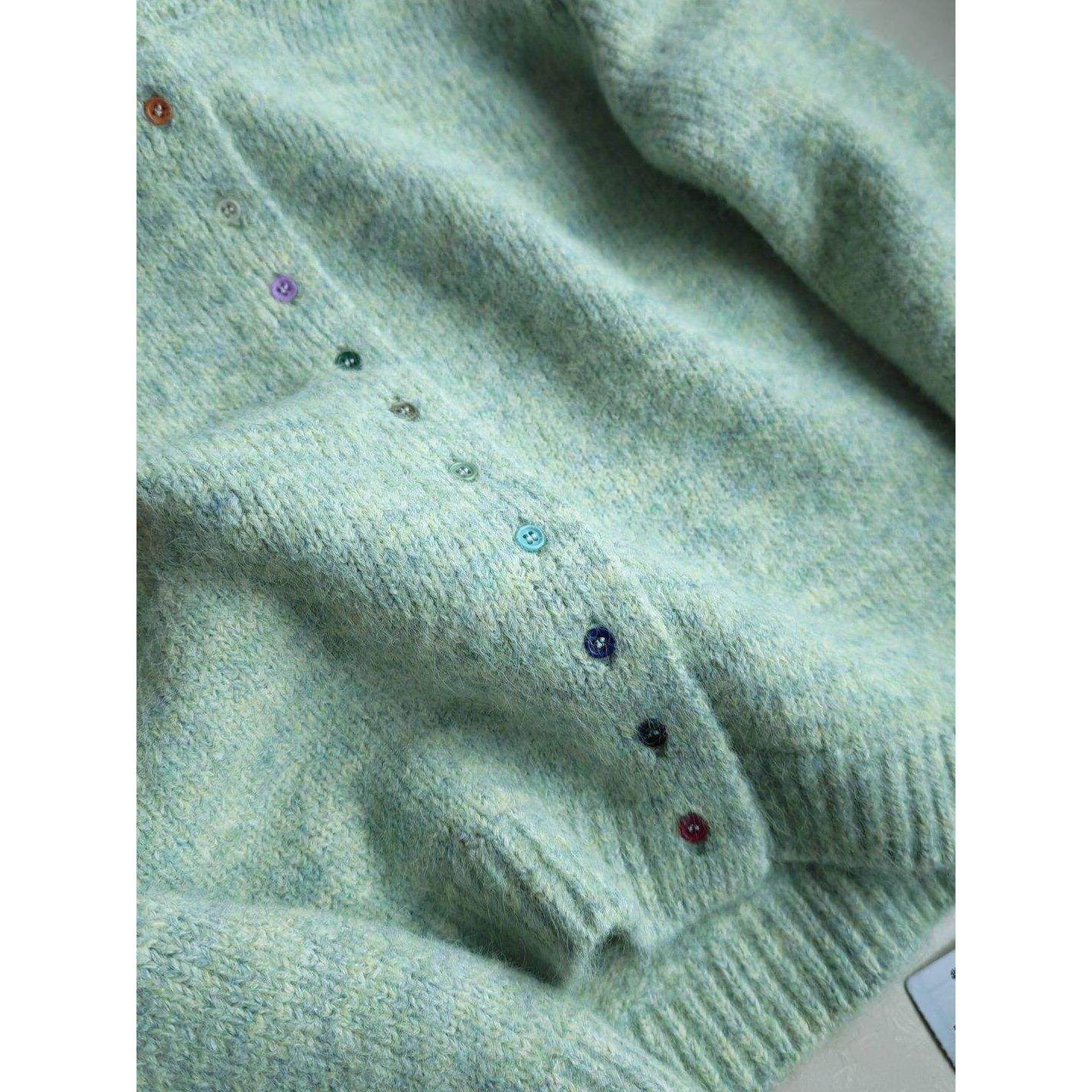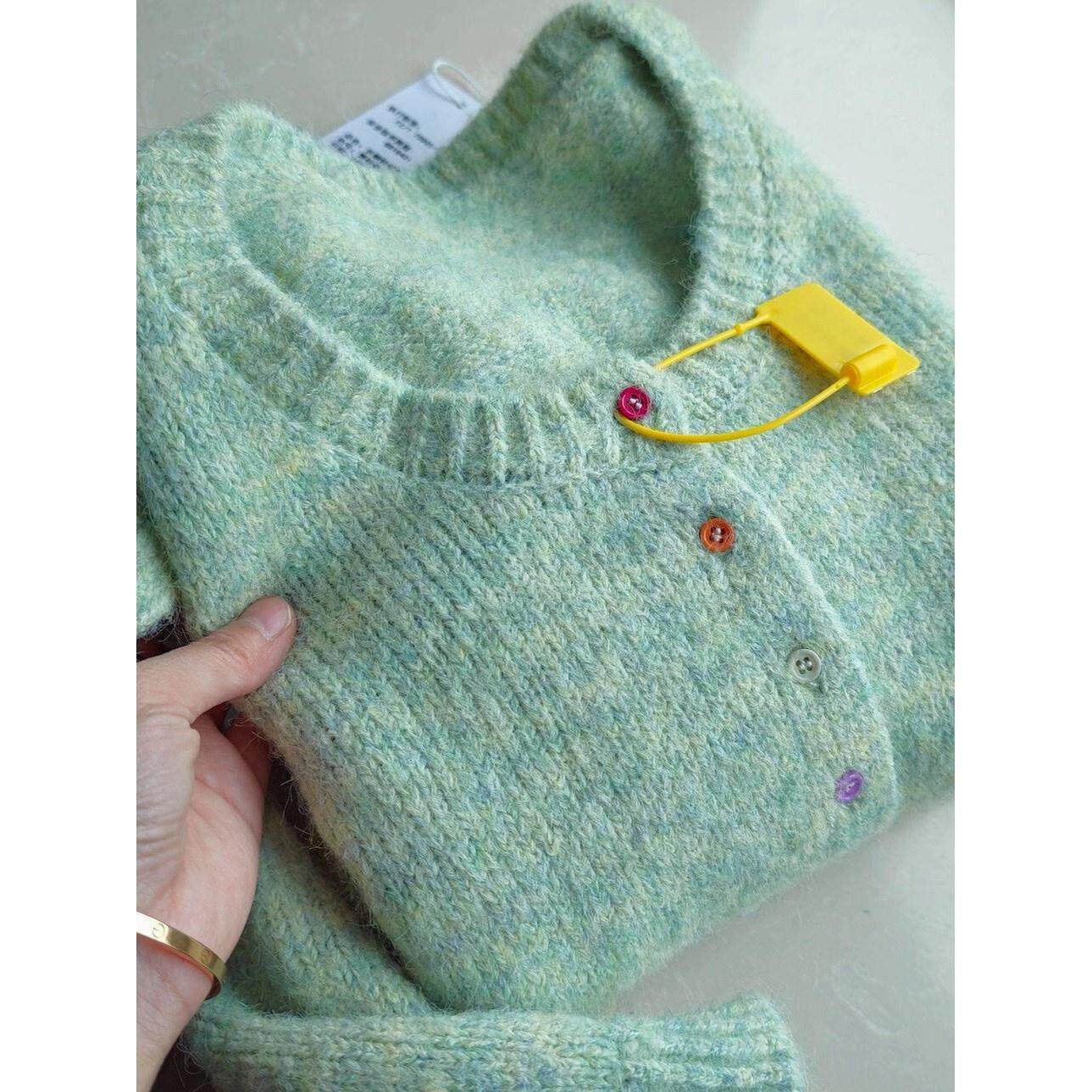 📚 羊毛混纺花纱彩色单排扣圆领针织开衫毛衣外套女秋冬45604