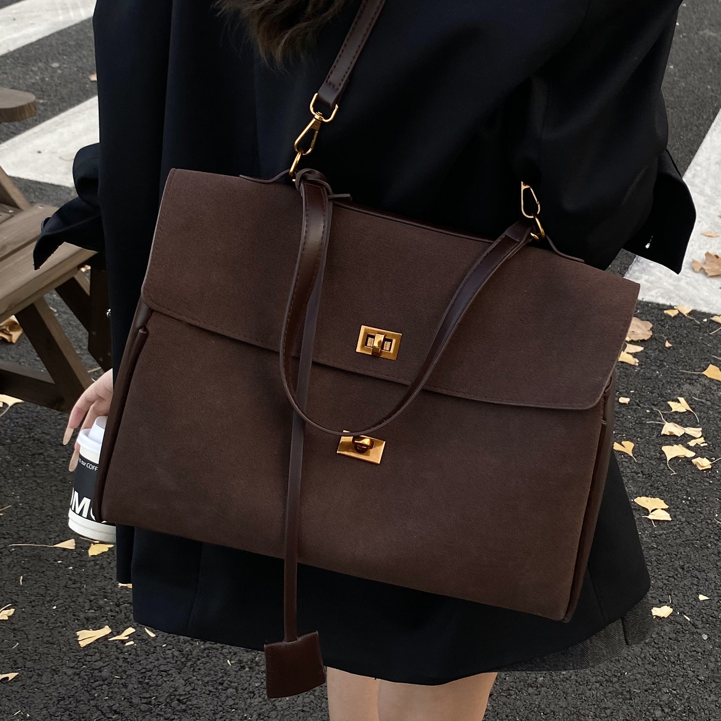 📚 百搭高级感复古手提包女2026新款秋季时尚美拉德大容量通勤托特包