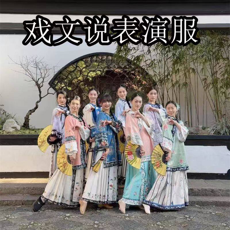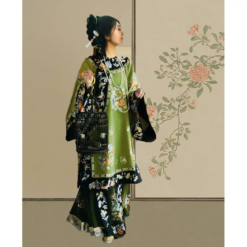📚 戏文说舞蹈服簪花清汉女服装格格汉服清朝满清旗装唐朝黄色印花裙