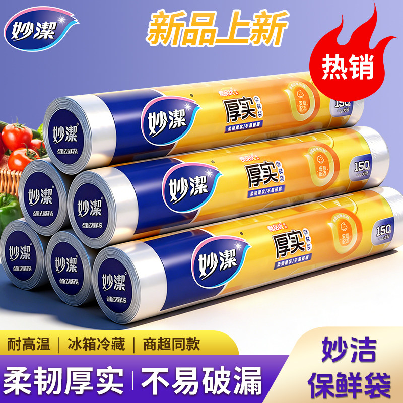 📚 妙洁保鲜袋家用经济装食品级手撕袋大号中号点断加厚厨房微波炉